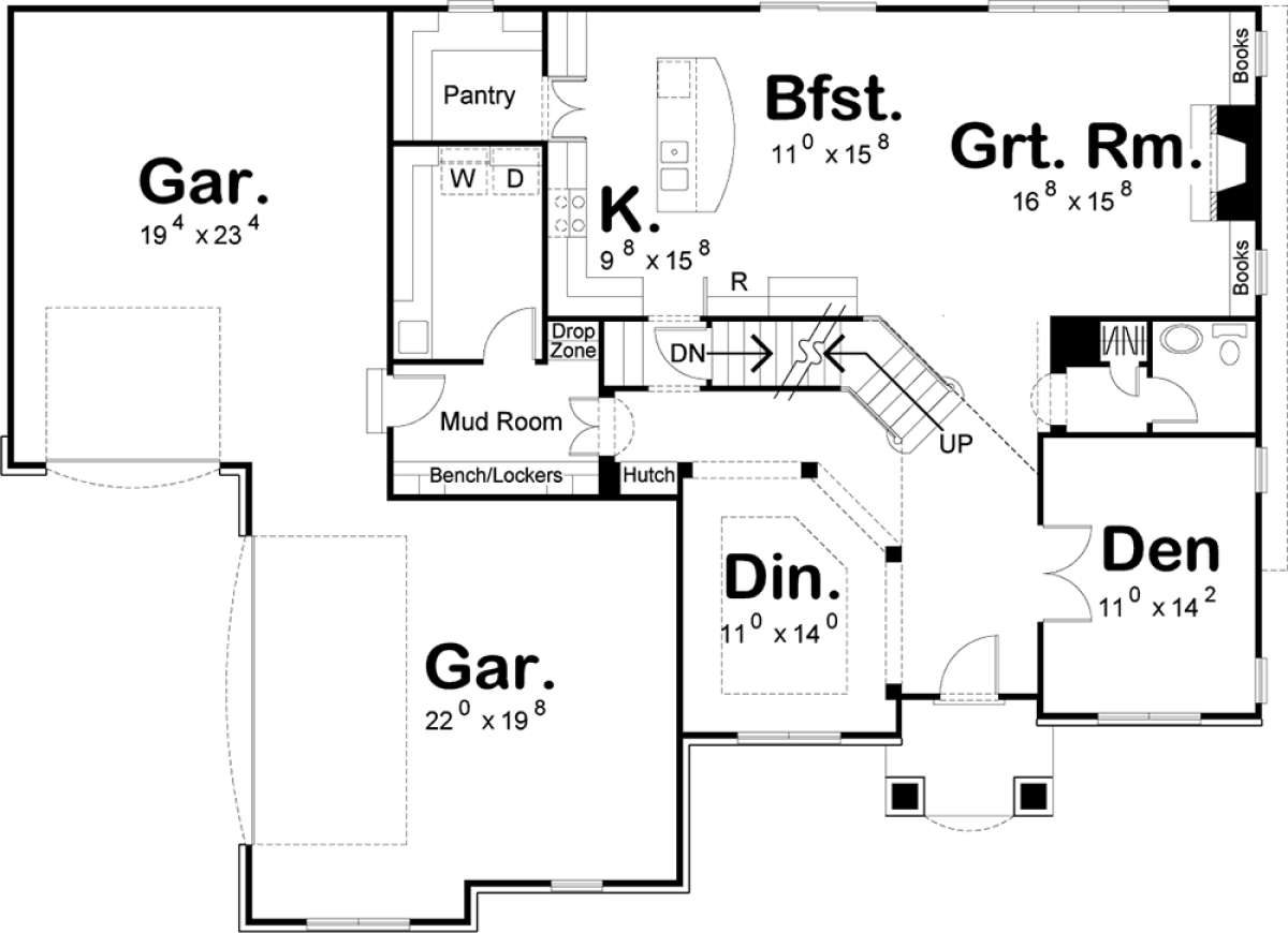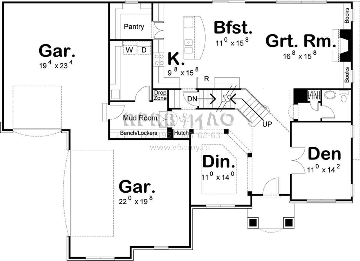 Проект двухэтажного дома с гаражом на три и более машин в стиле Ранчо S5-324 (963-00213)
