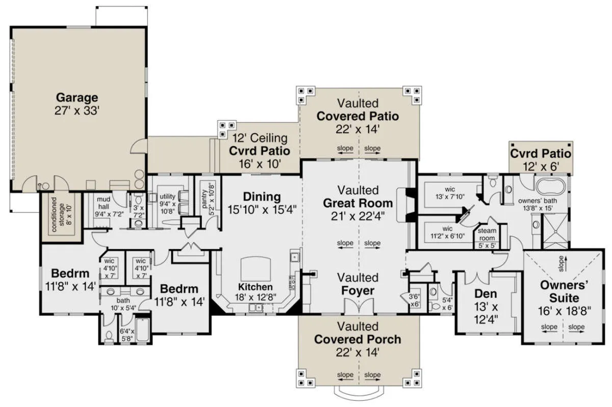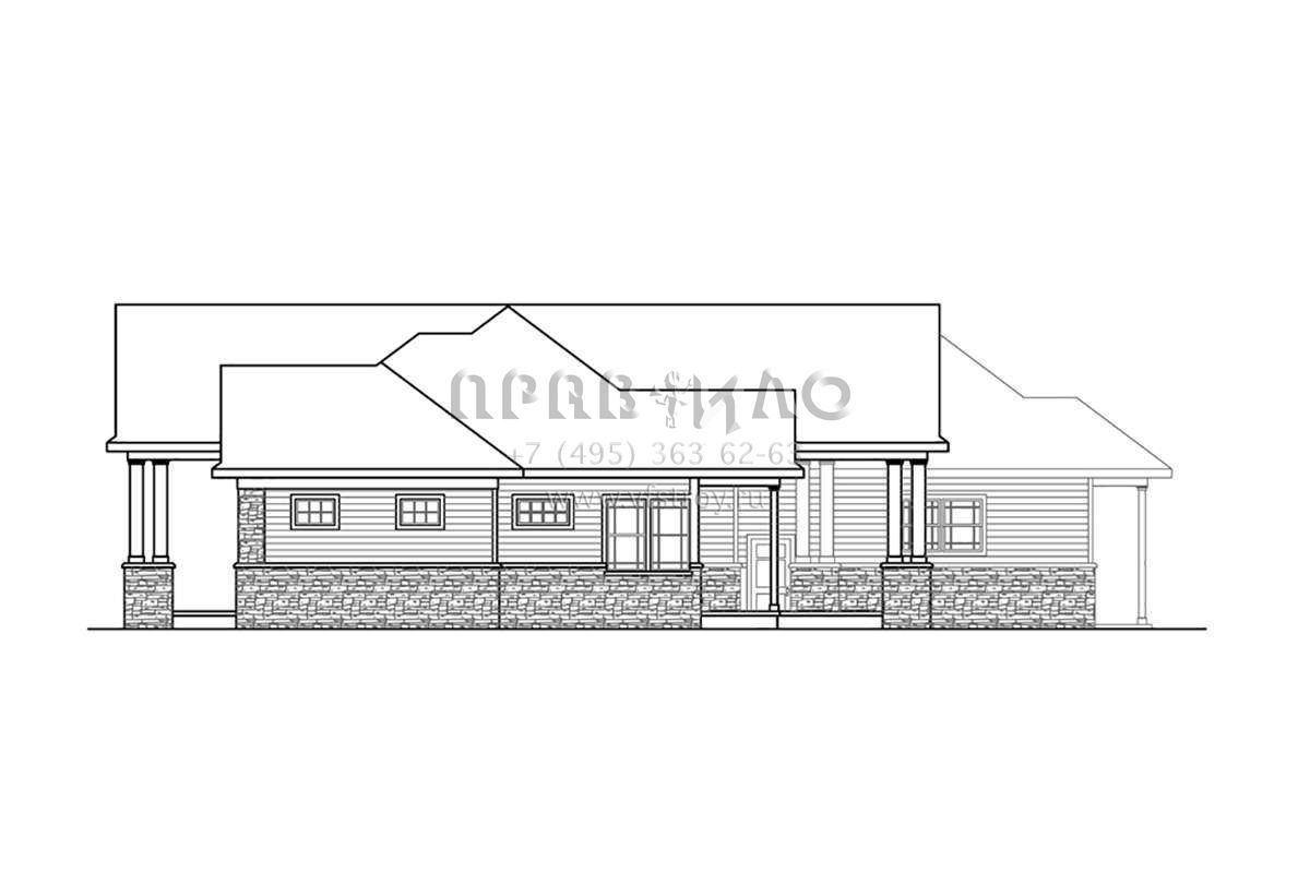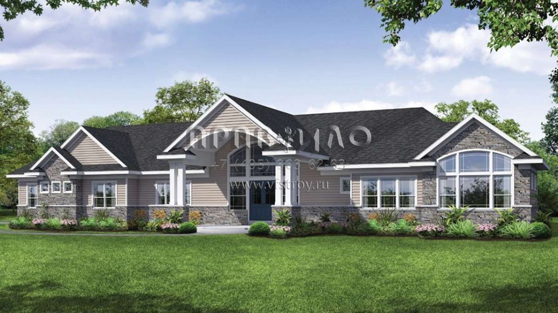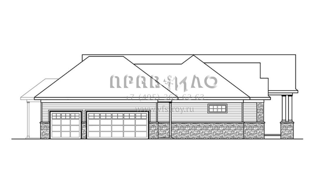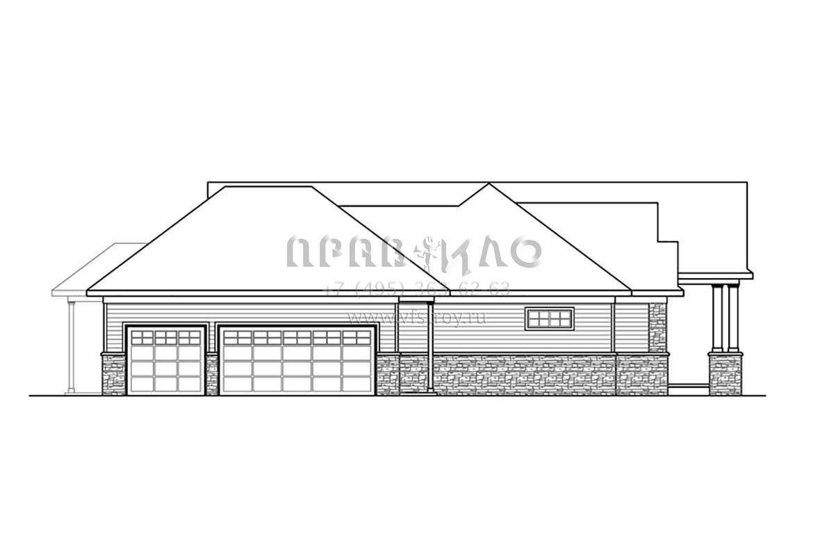 Проект одноэтажного дома с гаражом на три и более машин в стиле Ранчо S5-325 (035-00836)