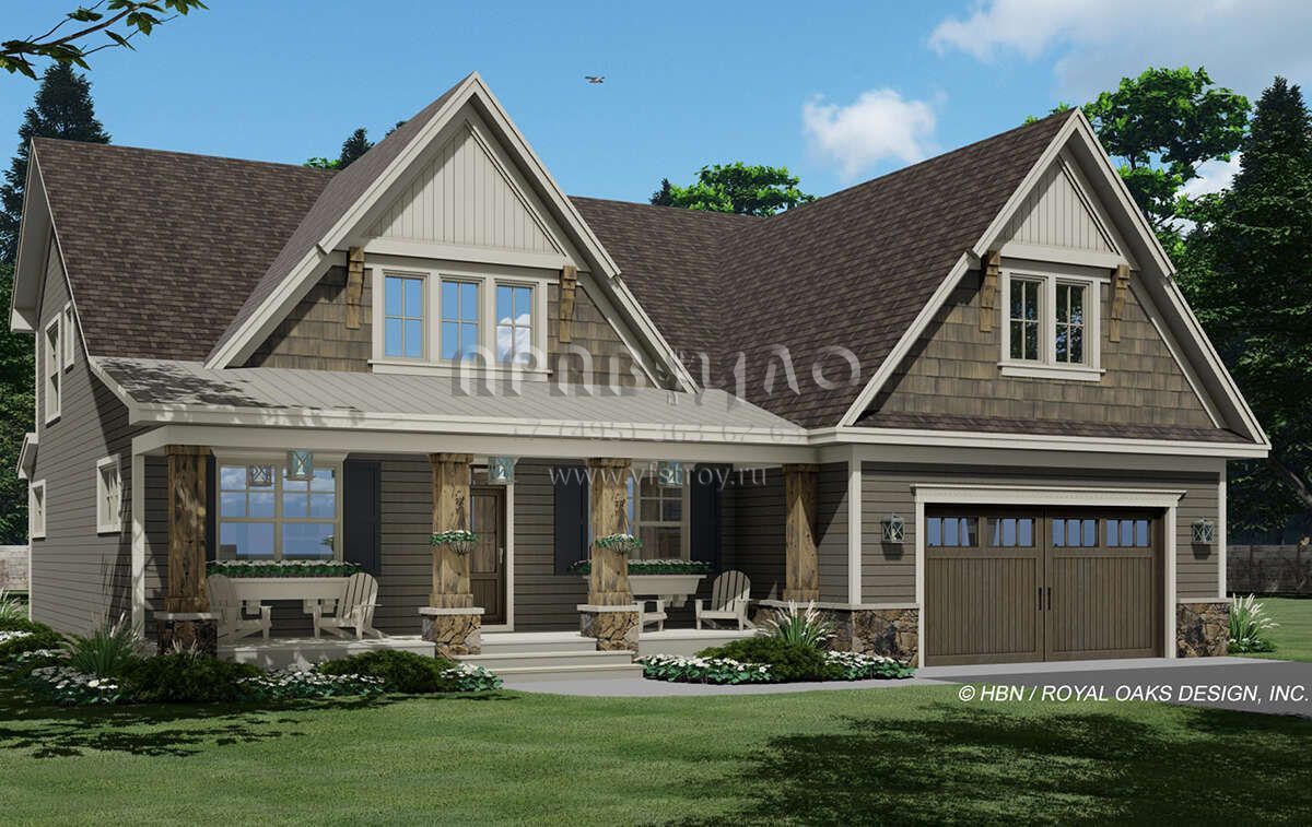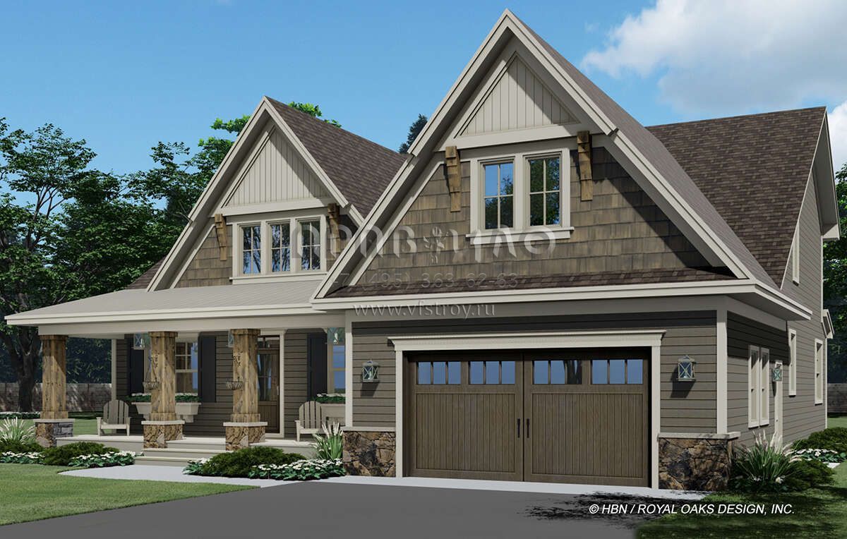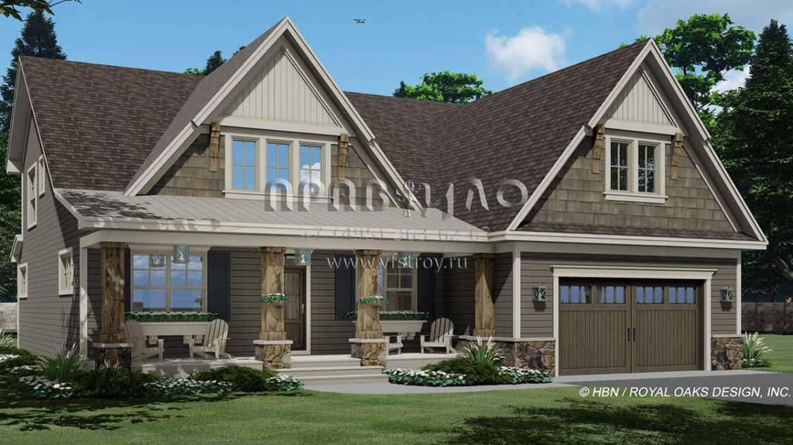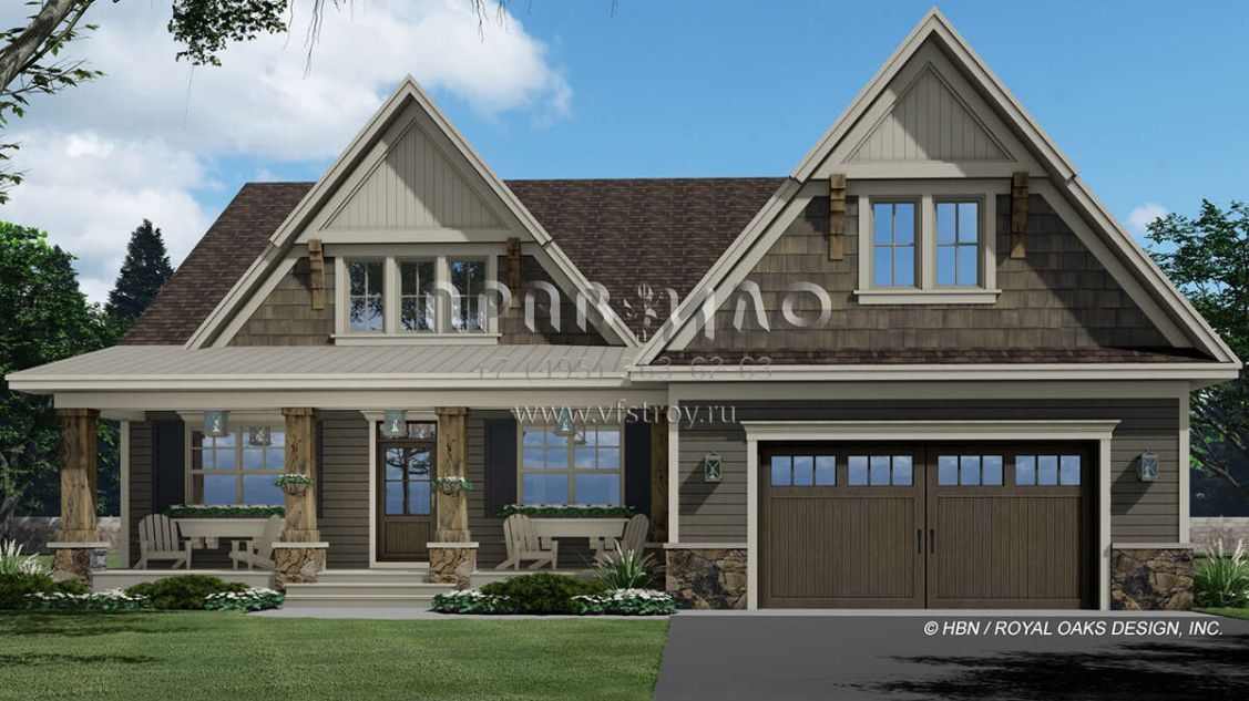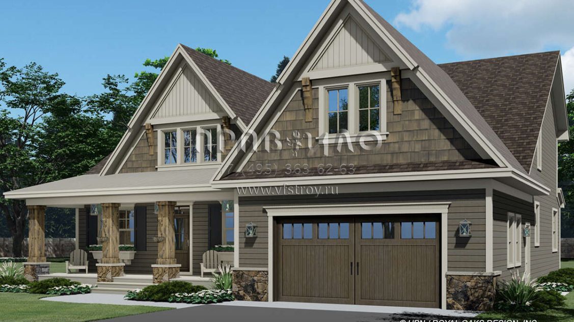 Проект двухэтажного дома с гаражом на две машины в американском стиле S5-325 (098-00375)