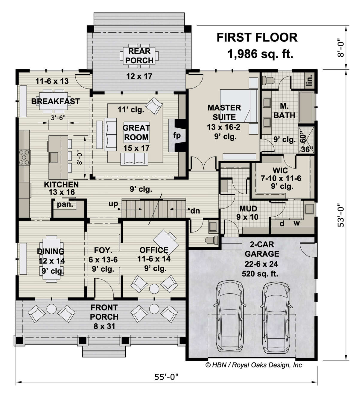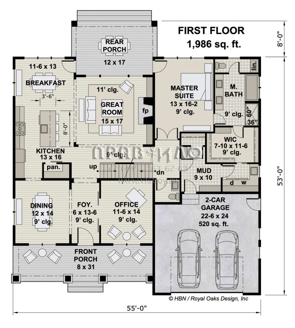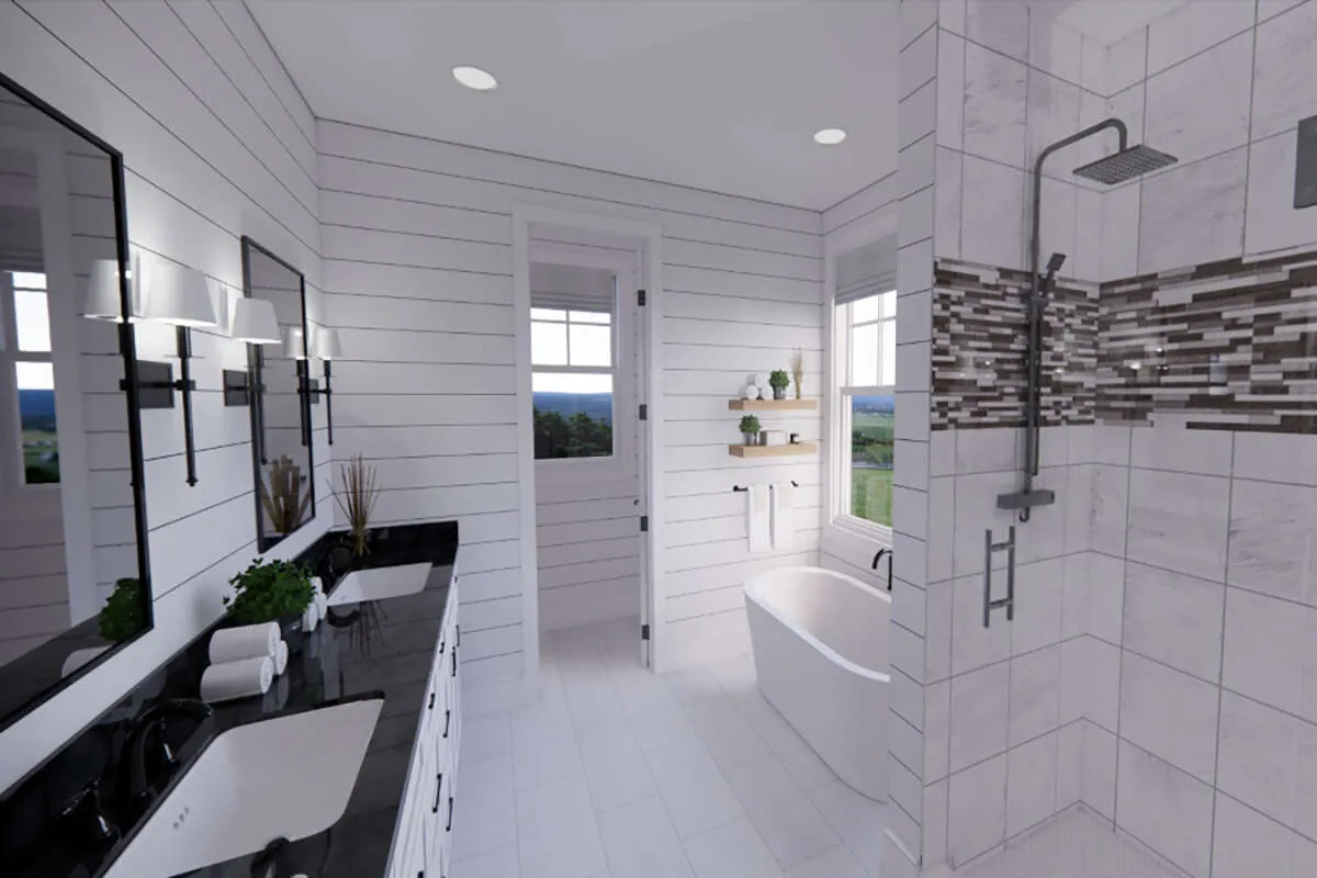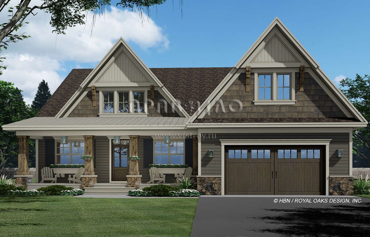 Проект двухэтажного дома с гаражом на две машины в американском стиле S5-325 (098-00375)