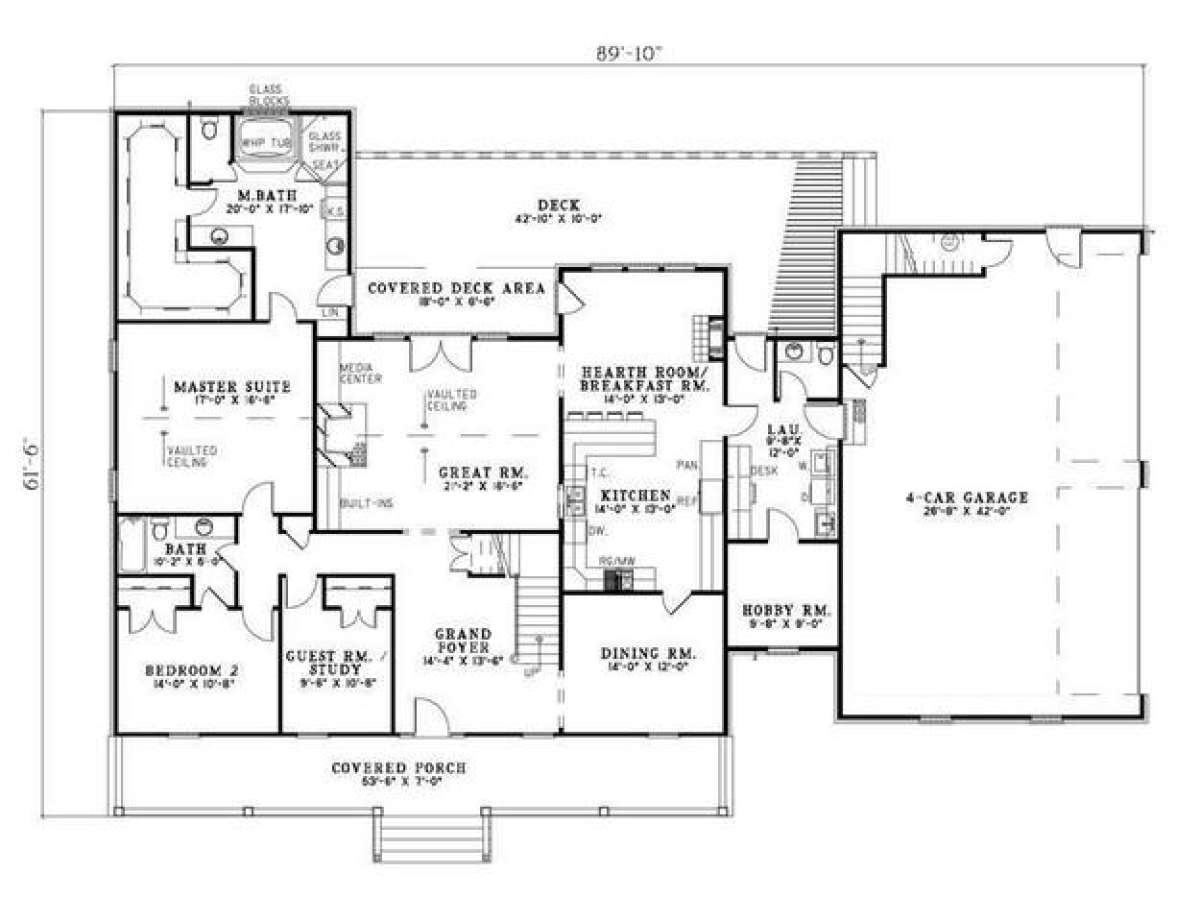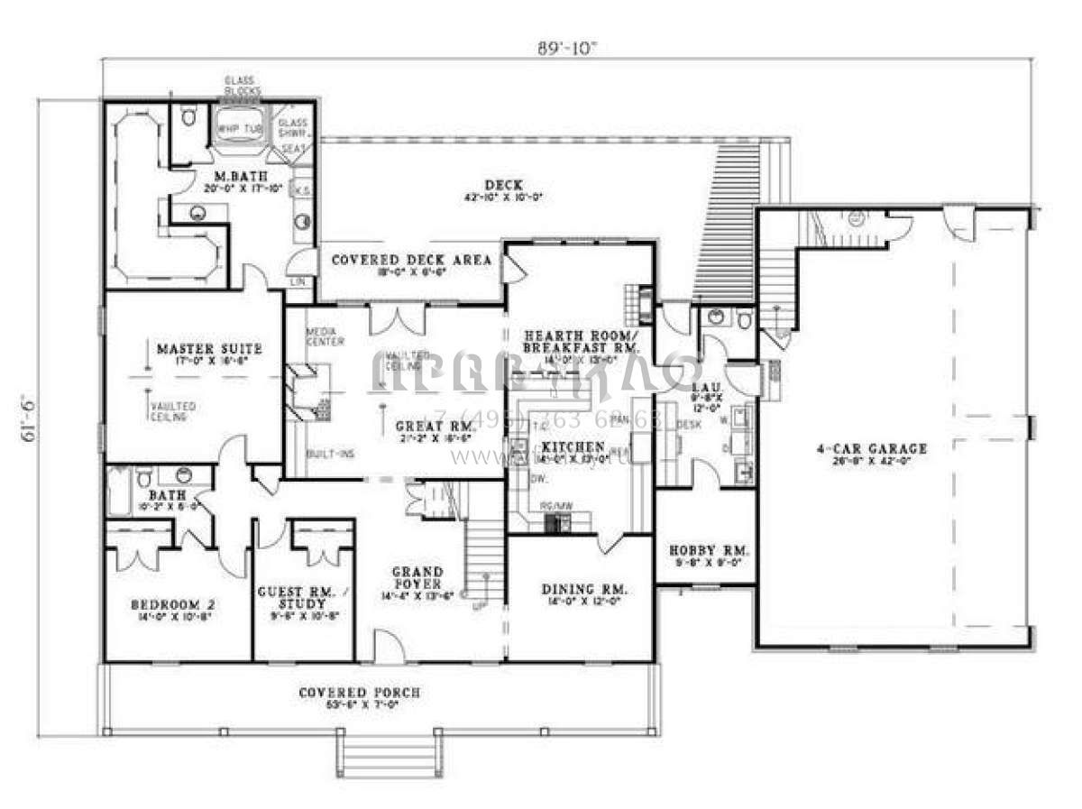 Проект двухэтажного дома с гаражом на три и более машин в стиле Ранчо S5-325 (110-00567)