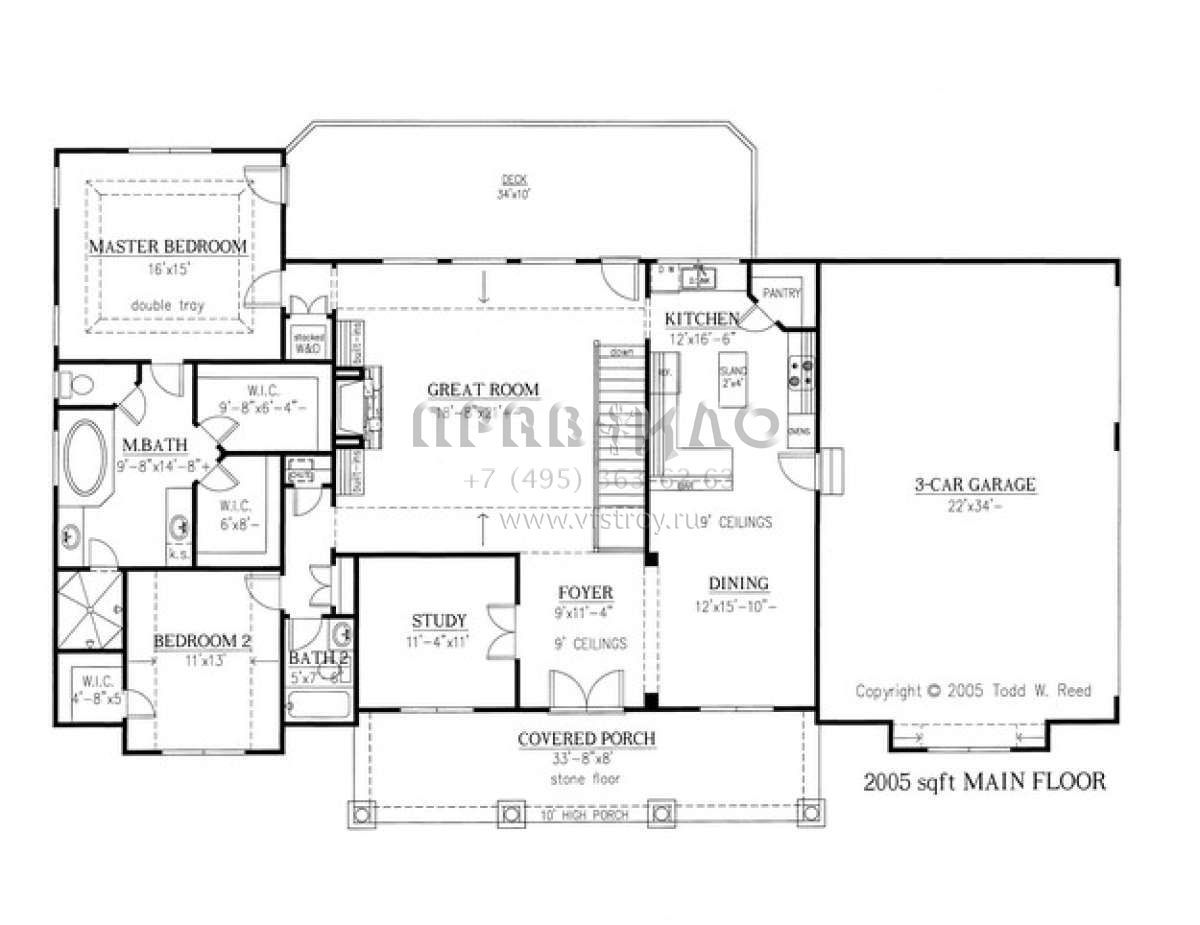 S5-325 (286-00011) Это иностранный проект, для которого требуется адаптация под нормы, действующие в Российской Федерации. Вы видите проект дома в стиле Ранчо. В этом доме сочетаются черты сельской постройки и аскетичность лофта. Внутри жильцы смогут проводить время с максимальным комфортом. Обратим внимание, что сейчас на планировках все размеры представлены в футах. Для перевода в метры вам необходимо значение в футах умножить на 0,3048.