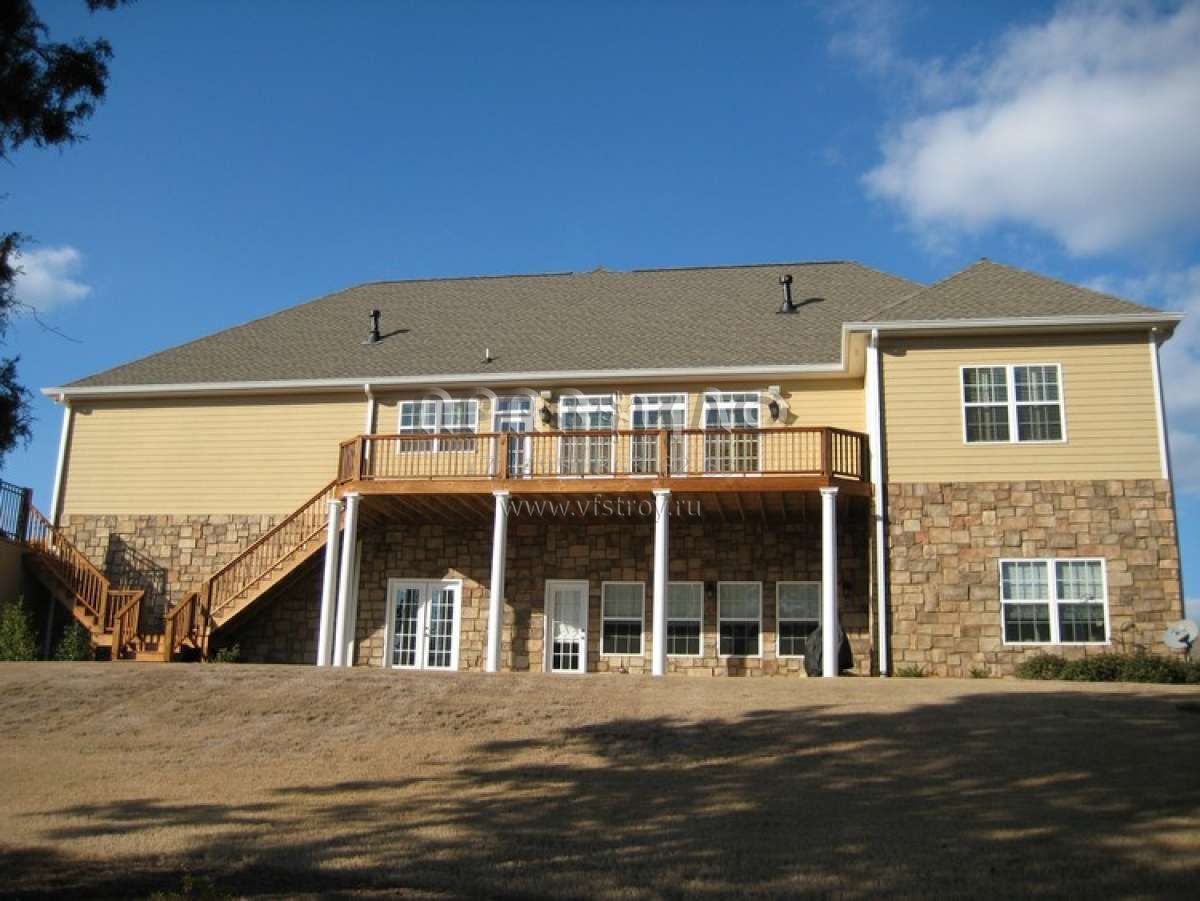 Большая площадь участка позволяет выбрать одноэтажный проект дома, особенно если в семье есть пожилые люди, инвалиды или маленькие дети.