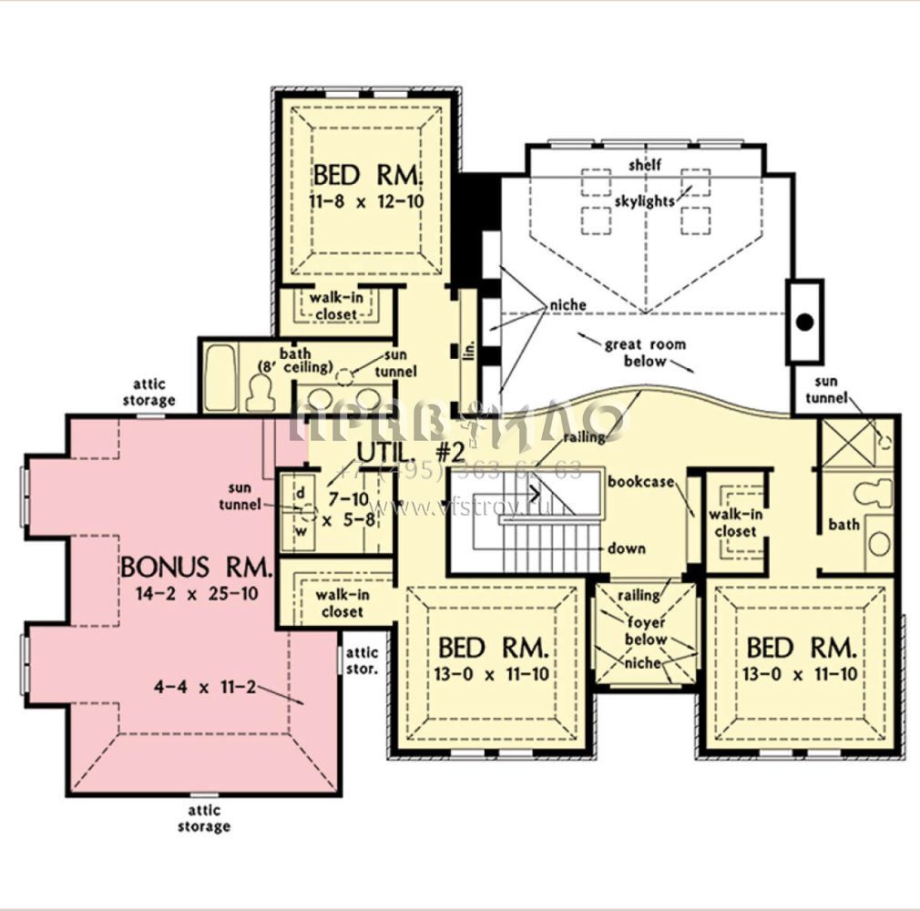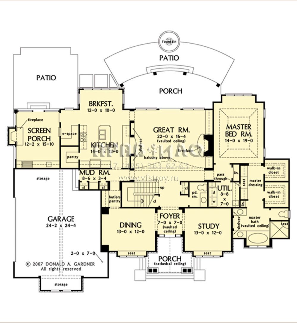 Поскольку этот проект разрабатывался иностранными архитекторами, для строительства дома требуется переработка проекта под действующие в России нормы. Данные визуализации проекта представлены для ознакомления с концепцией проекта. Проект разработан американским архитектурным бюро и представлен America's Best House Plans.