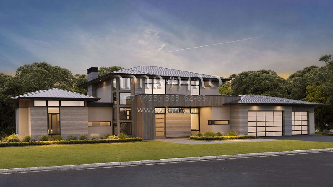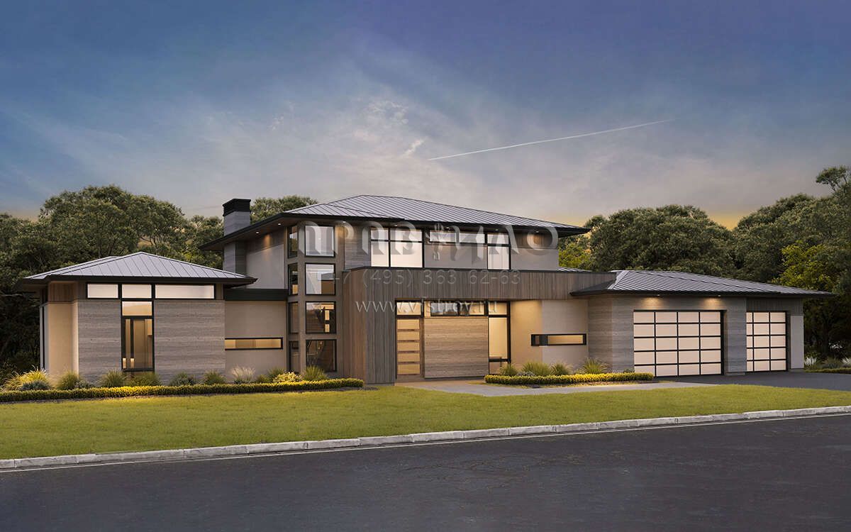 Проект двухэтажного дома с гаражом на три и более машин в современном стиле S5-325 (8937-00035)