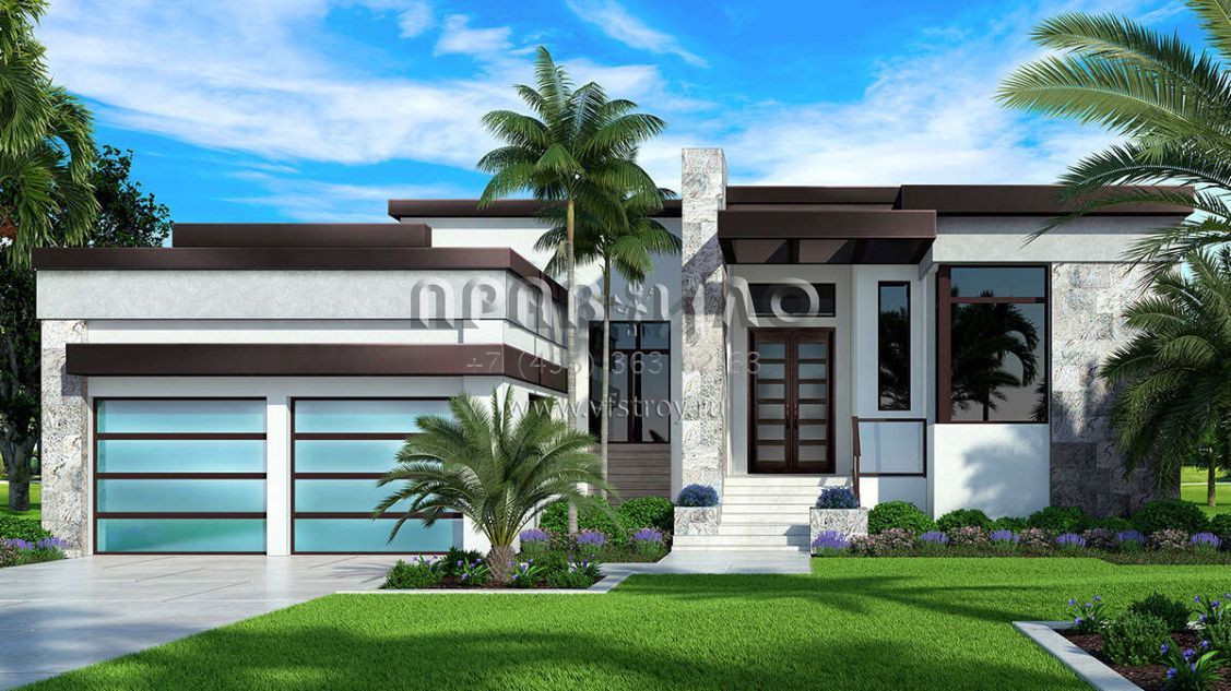 Проект одноэтажного дома с гаражом на три и более машин в современном стиле S5-327 (5565-00056)