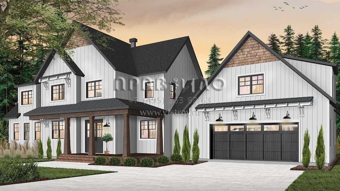 Проект двухэтажного дома с гаражом на две машины в современном стиле S5-328 (034-01218)