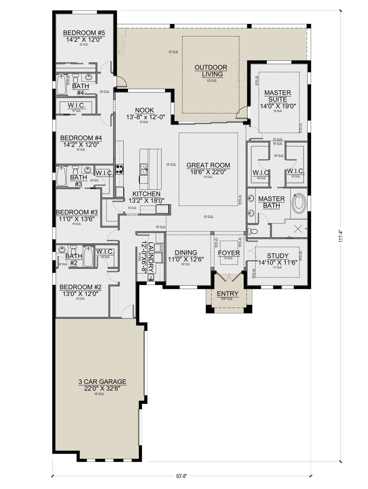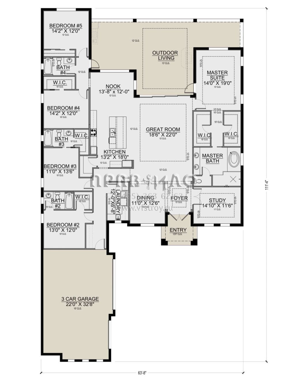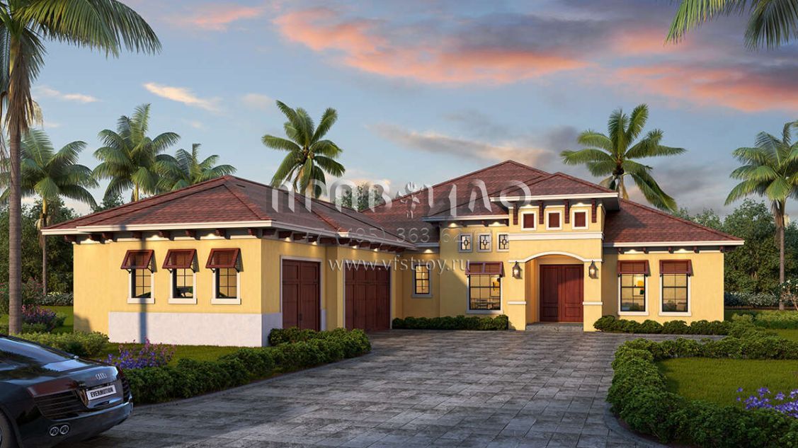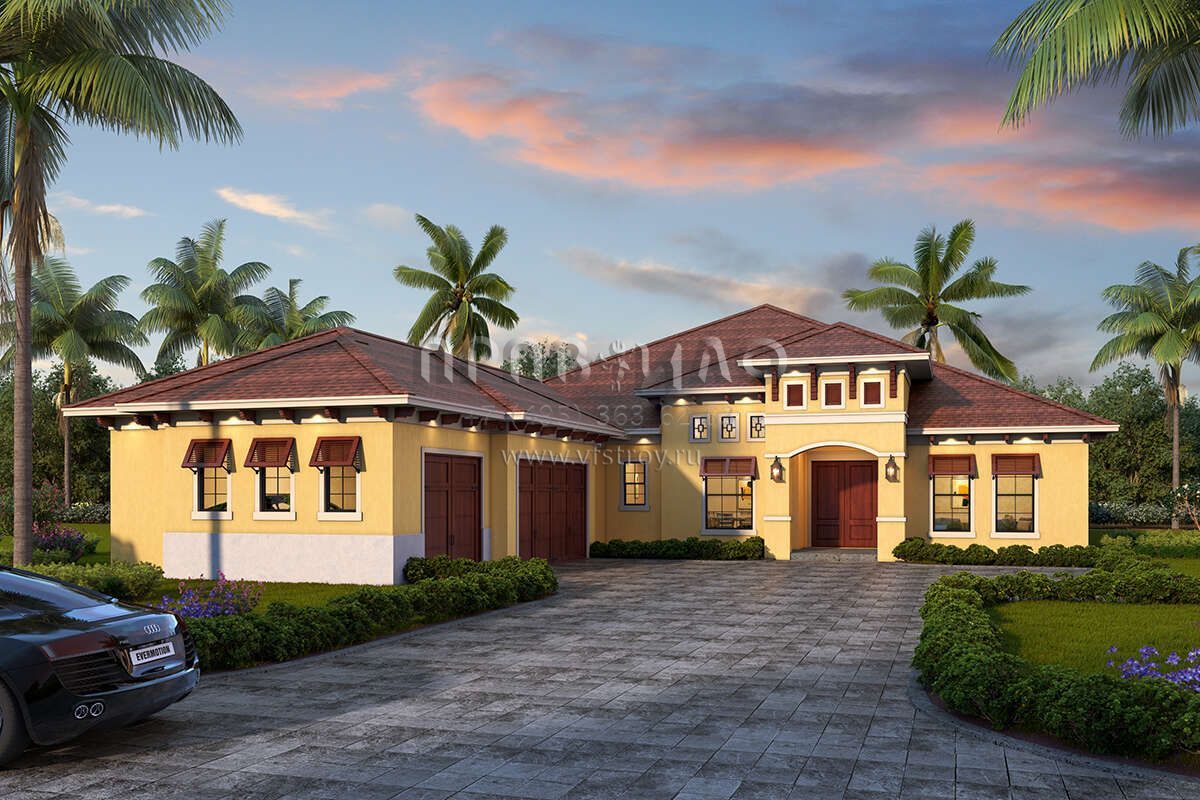 Проект одноэтажного дома с гаражом на три и более машин в прибрежном стиле S5-328 (5565-00125)