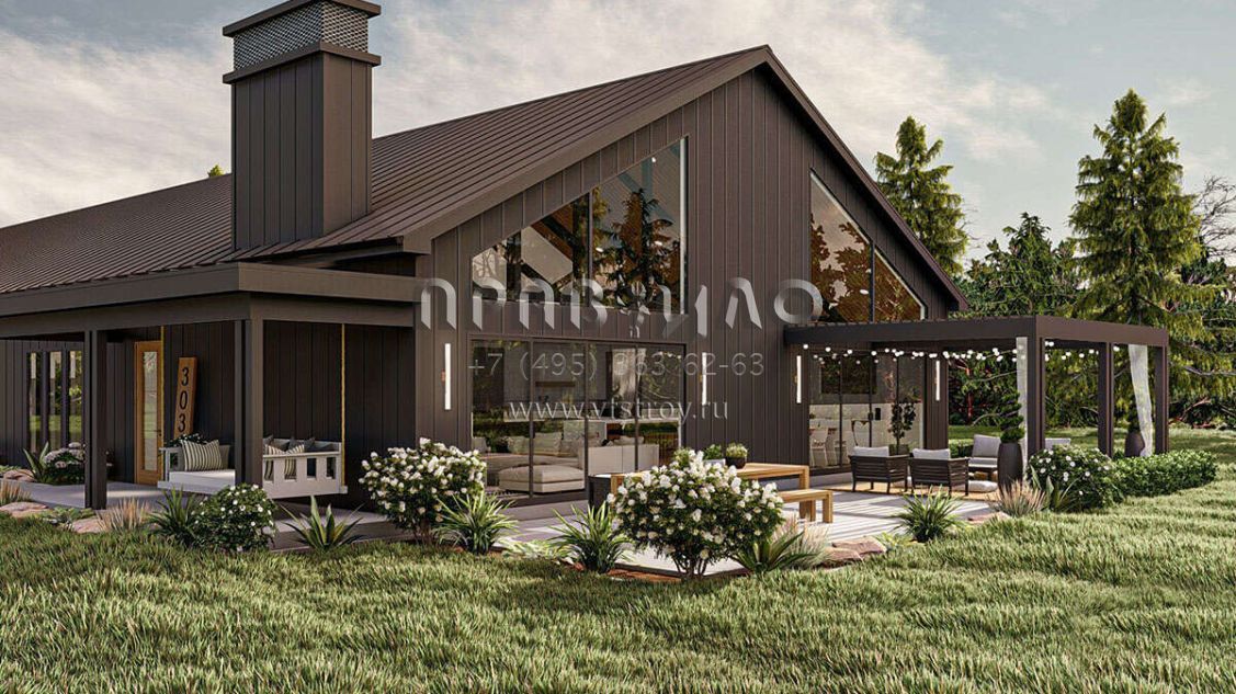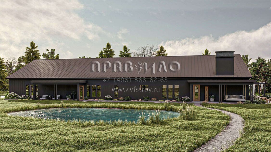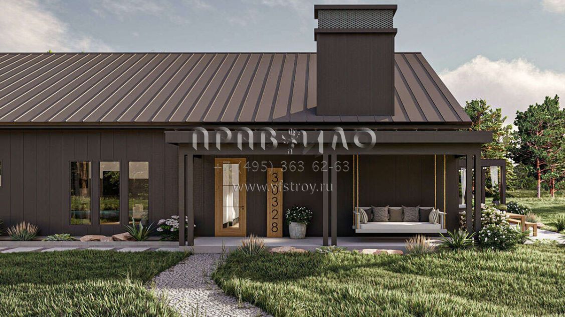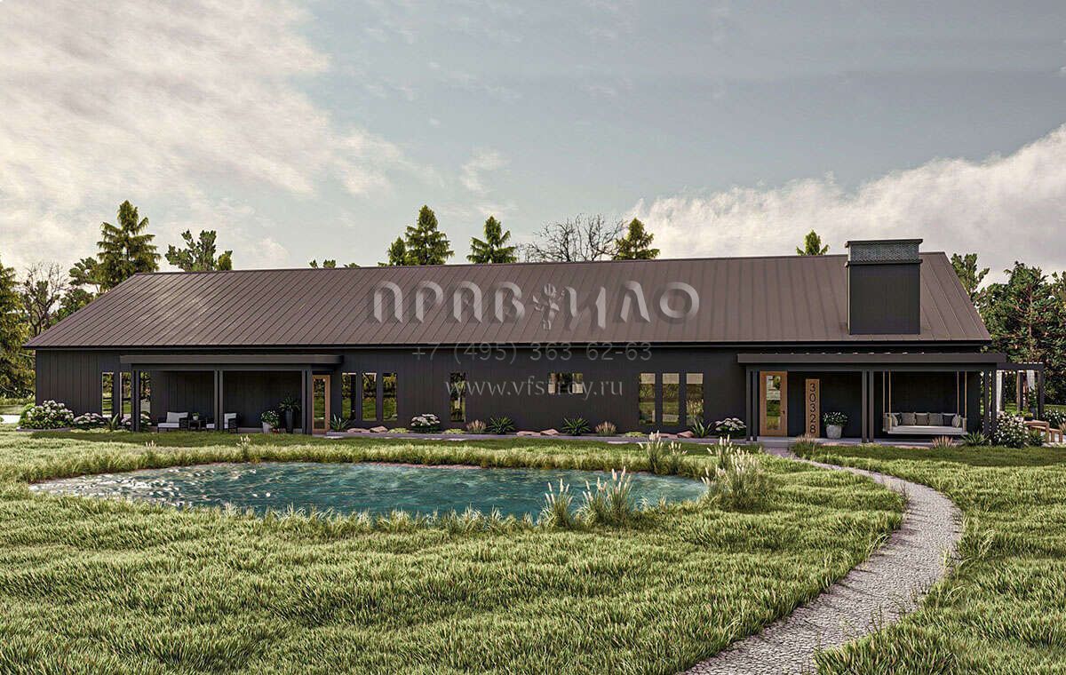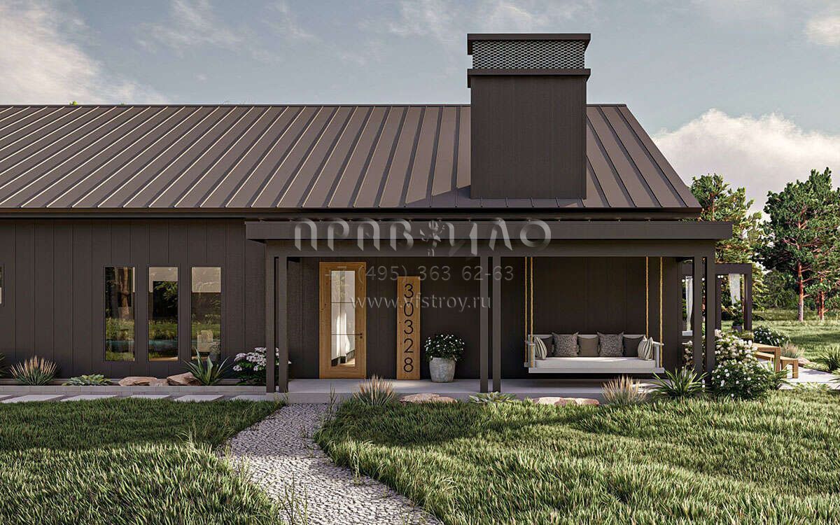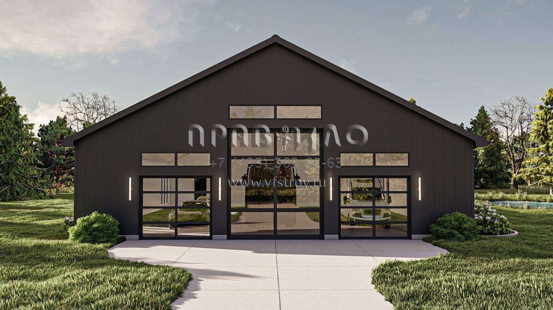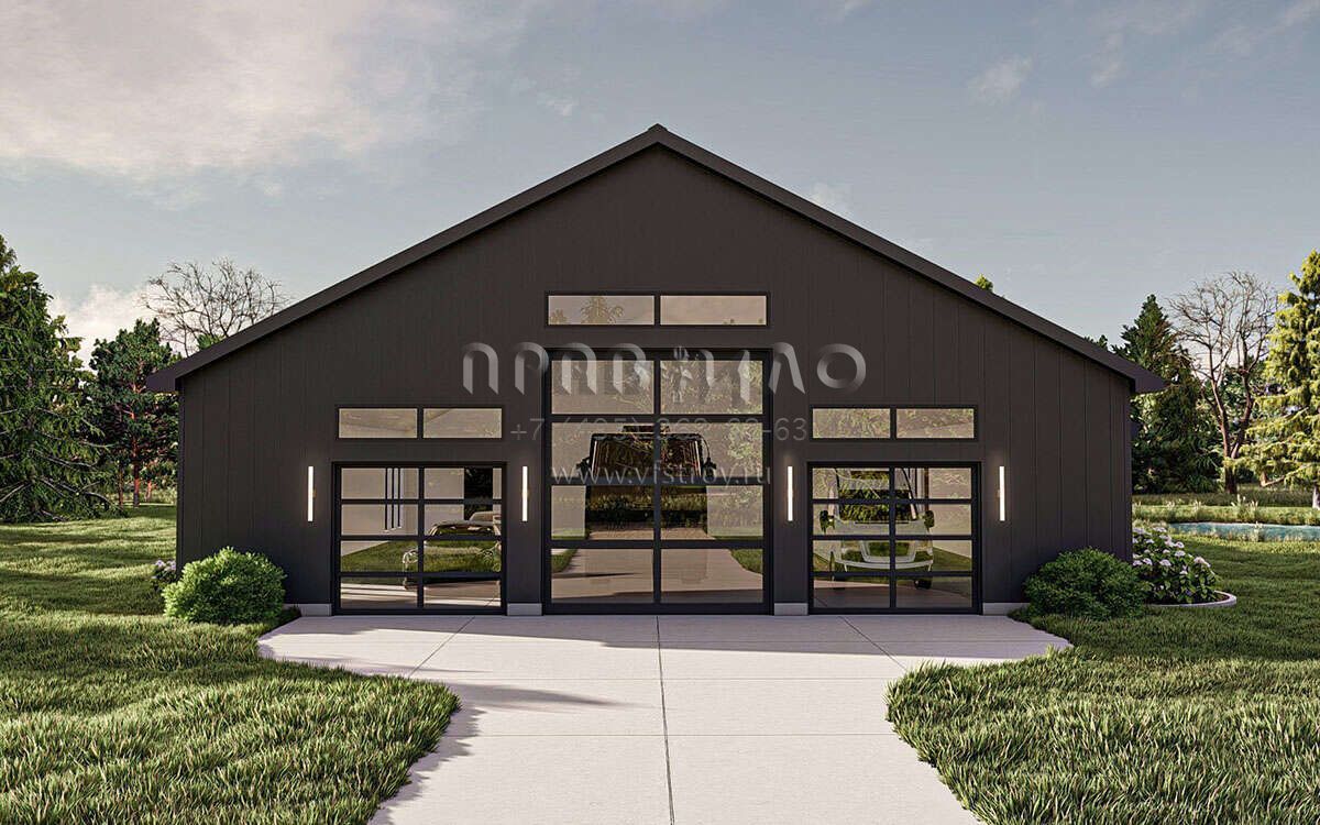 Проект одноэтажного дома с гаражом на три и более машин в стиле БарнХаус S5-328 (963-00842)