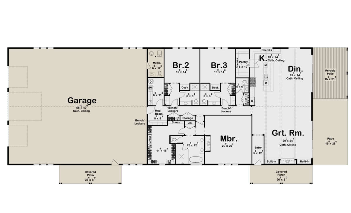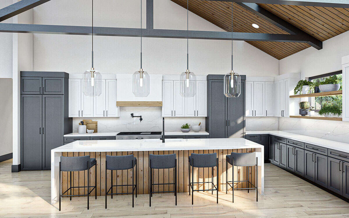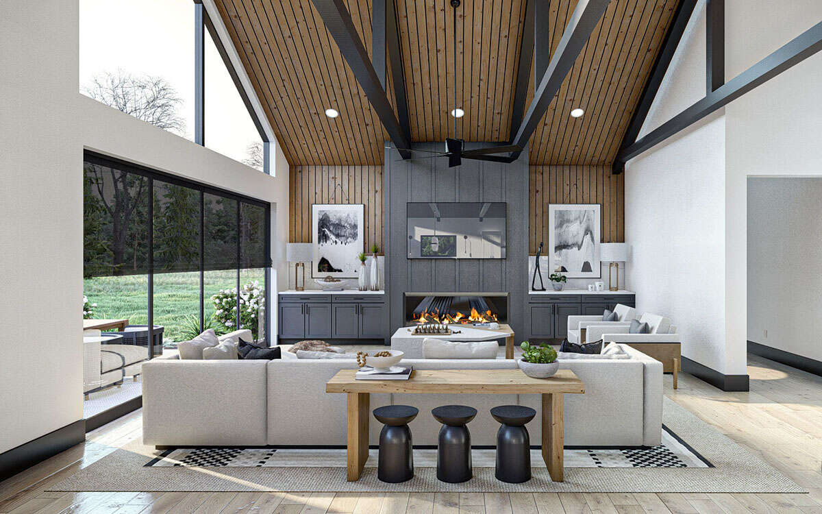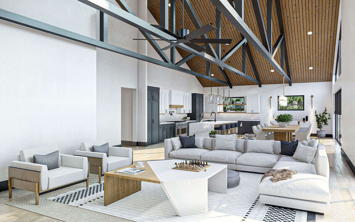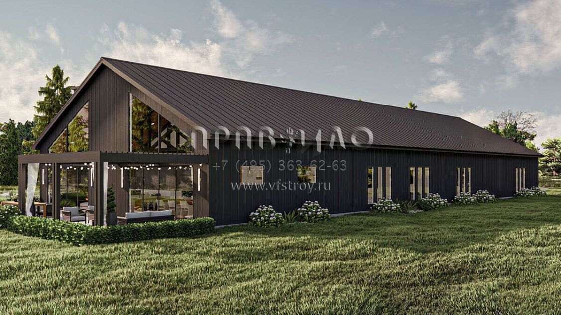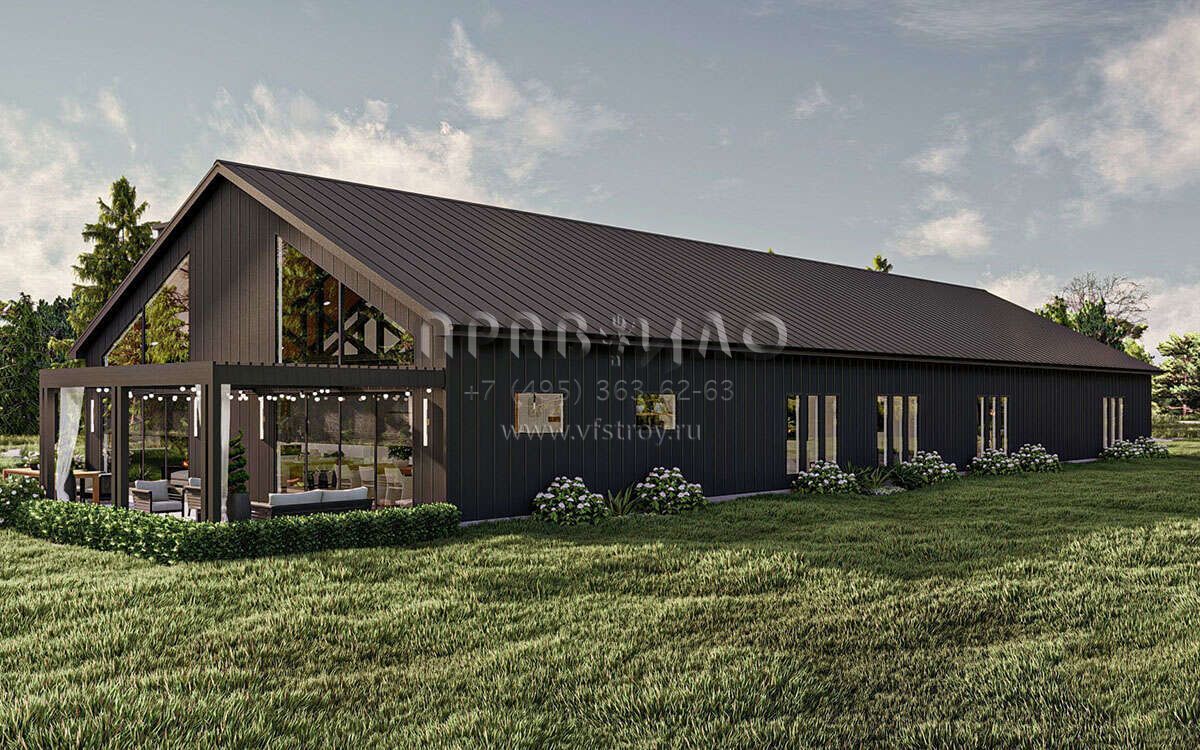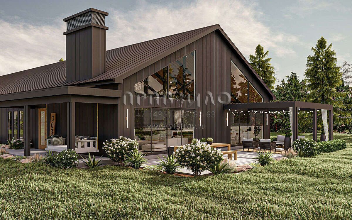 Проект одноэтажного дома с гаражом на три и более машин в стиле БарнХаус S5-328 (963-00842)