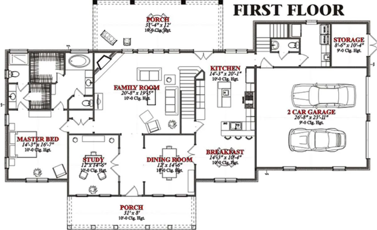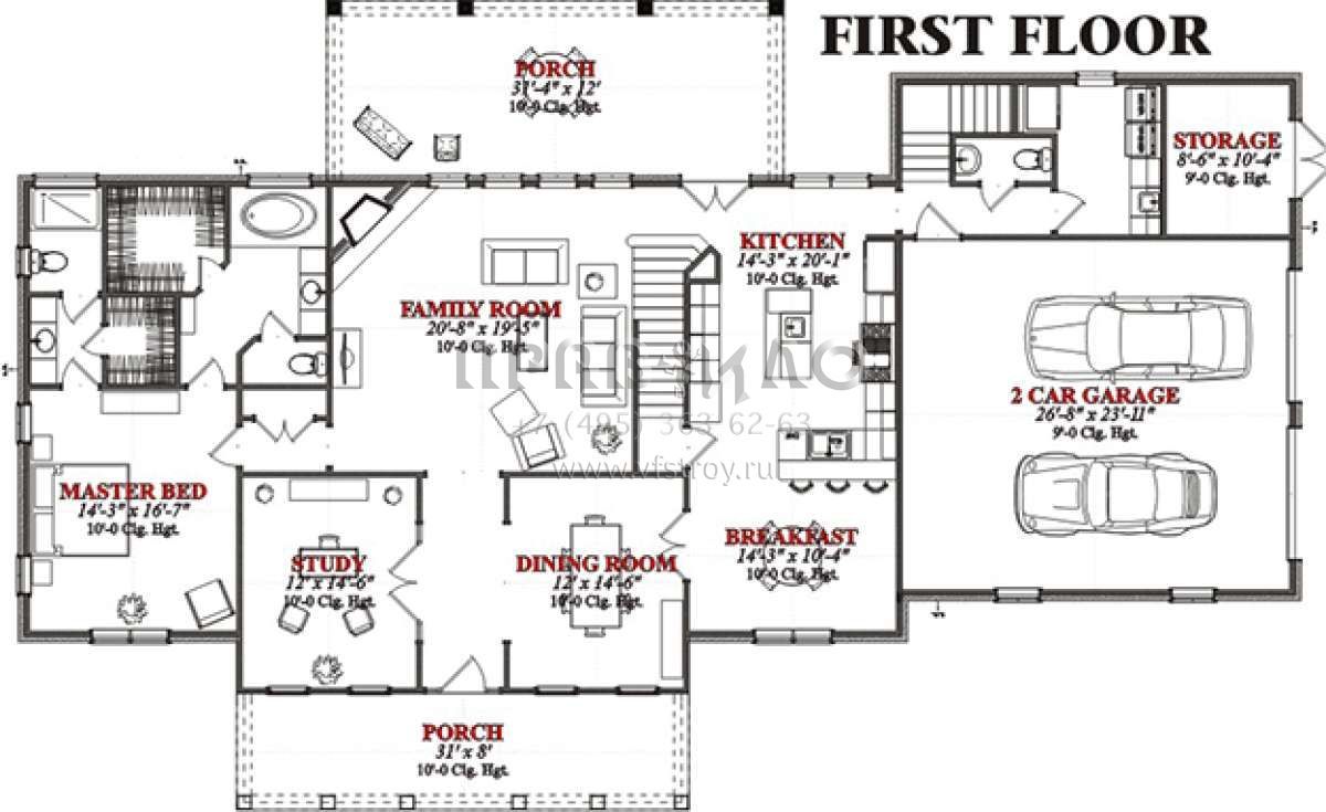 Проект одноэтажного дома с гаражом на две машины в стиле Ранчо S5-329 (1070-00095)