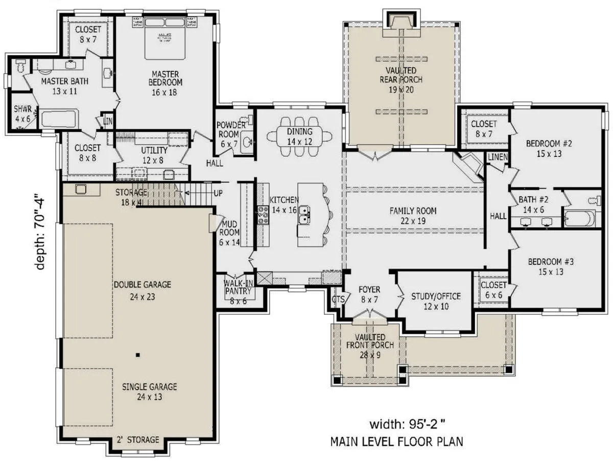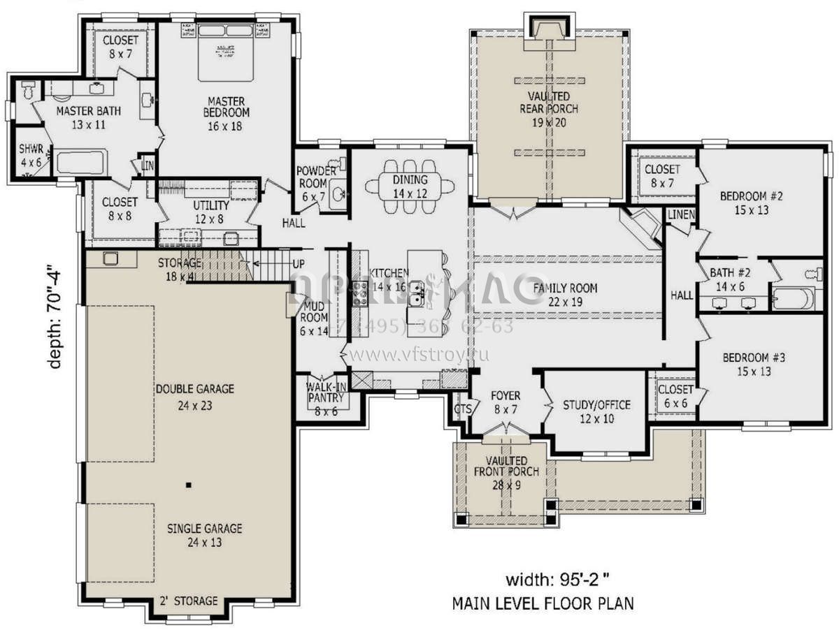 Проект двухэтажного дома с гаражом на три и более машин в американском стиле S5-329 (940-00133)