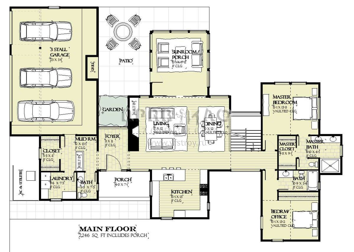 Проект одноэтажного дома с гаражом на три и более машин в современном стиле S5-330 (1637-00167)