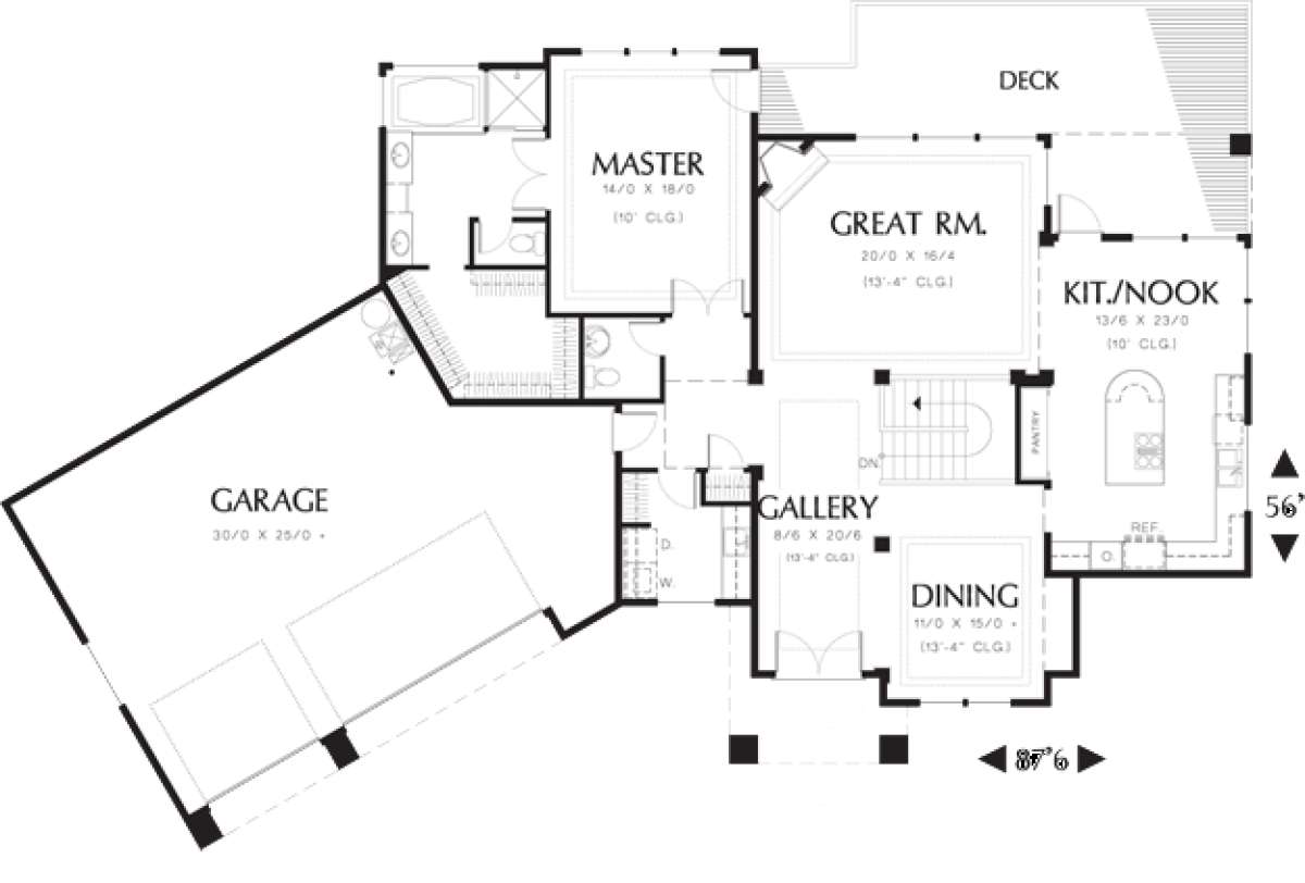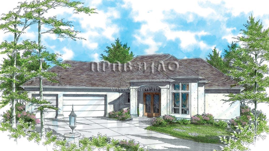 Проект одноэтажного дома с гаражом на три и более машин в стиле Ранчо S5-330 (2559-00154)