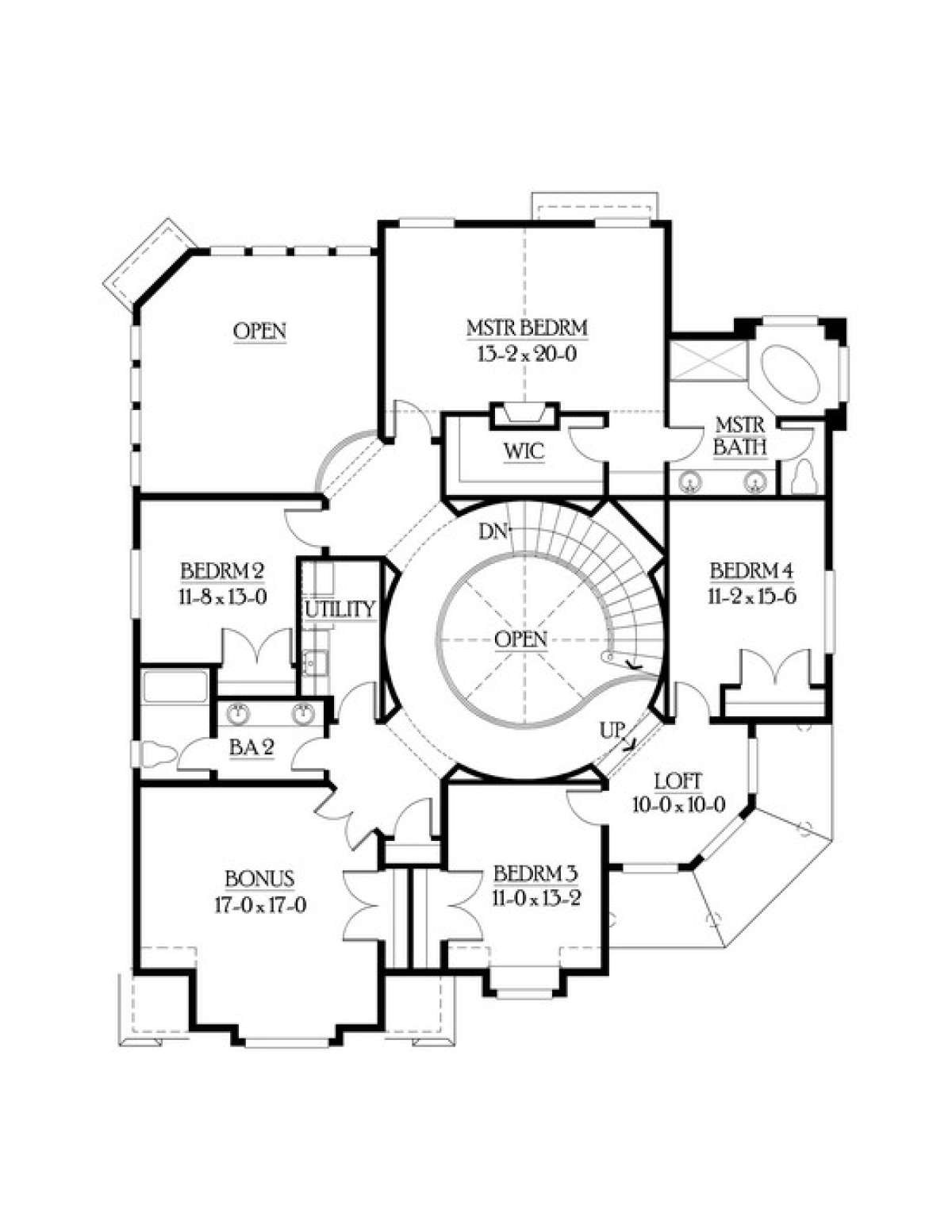 Это проект одноэтажного дома с гаражом на три и более машин жилой площадью 330 кв.м. Длина дома 17.7 м, ширина 15.2 м, высота 9.8 м. В доме четыре спальни и два санузла.