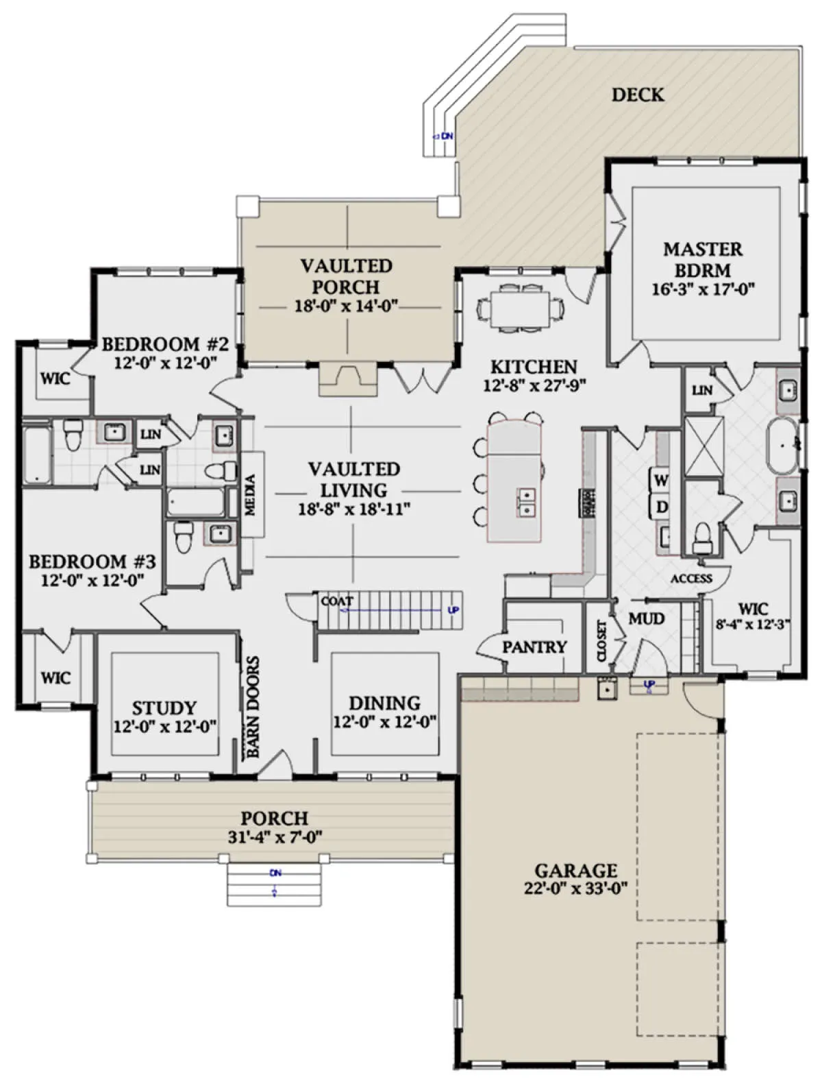 S5-331 (6849-00072) Это иностранный проект, для которого требуется адаптация под нормы, действующие в Российской Федерации. Вы видите проект дома в современном стиле. В этом доме сочетаются черты сельской постройки и аскетичность лофта. Внутри жильцы смогут проводить время с максимальным комфортом. Обратим внимание, что сейчас на планировках все размеры представлены в футах. Для перевода в метры вам необходимо значение в футах умножить на 0,3048.