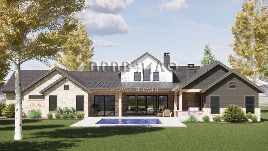 Проект одноэтажного дома с гаражом на три и более машин в современном стиле S5-331 (7983-00010)