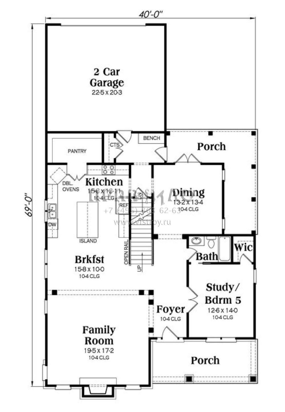 Проект двухэтажного дома с гаражом на две машины в американском стиле S5-332 (009-00200)