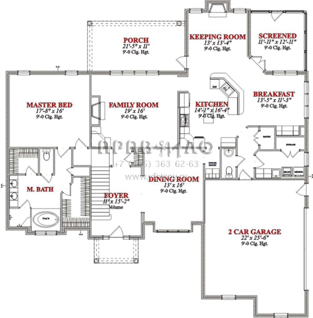 Проект двухэтажного дома с гаражом на две машины в стиле Ранчо S5-332 (1070-00111)