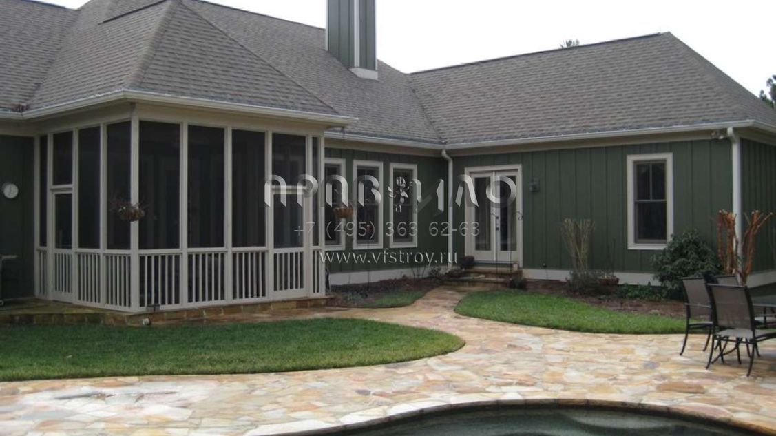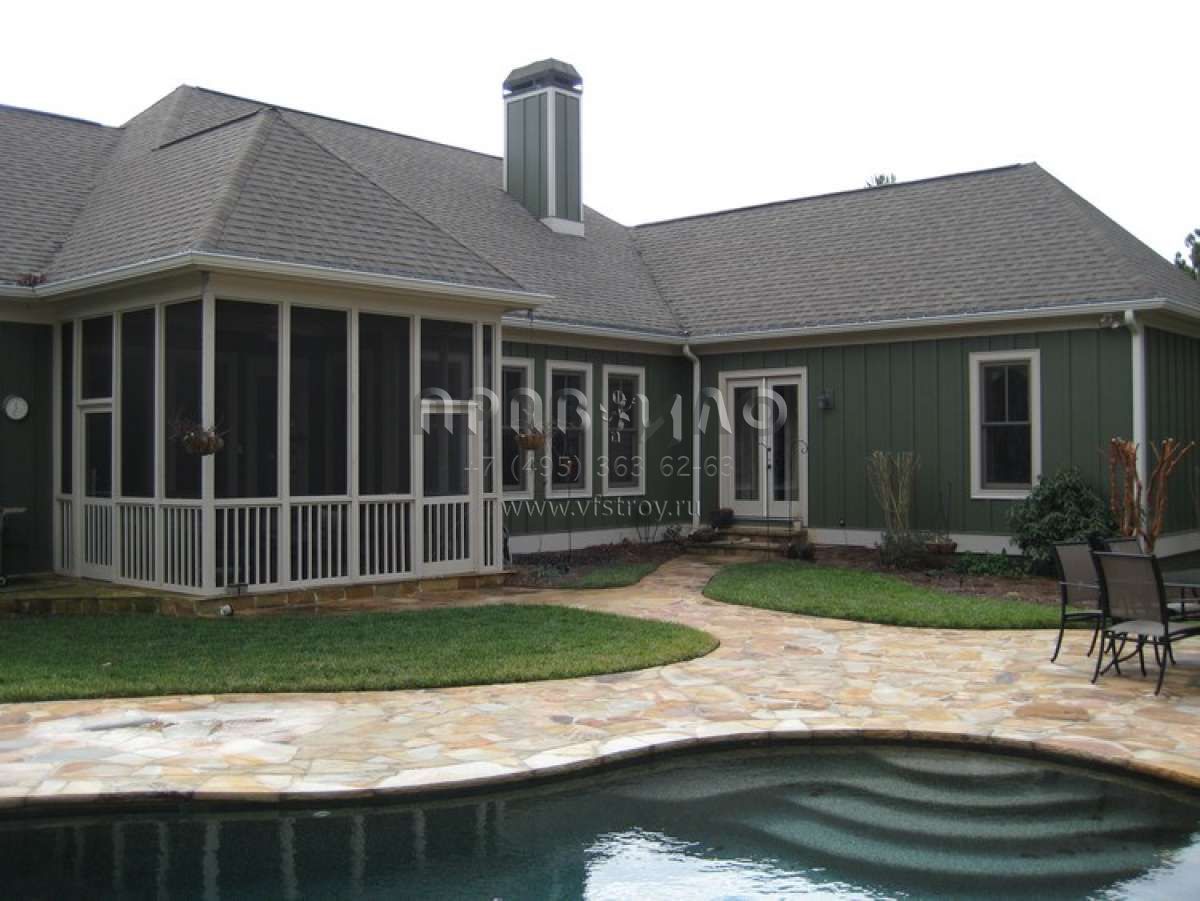 Большая площадь участка позволяет выбрать одноэтажный проект дома, особенно если в семье есть пожилые люди, инвалиды или маленькие дети.