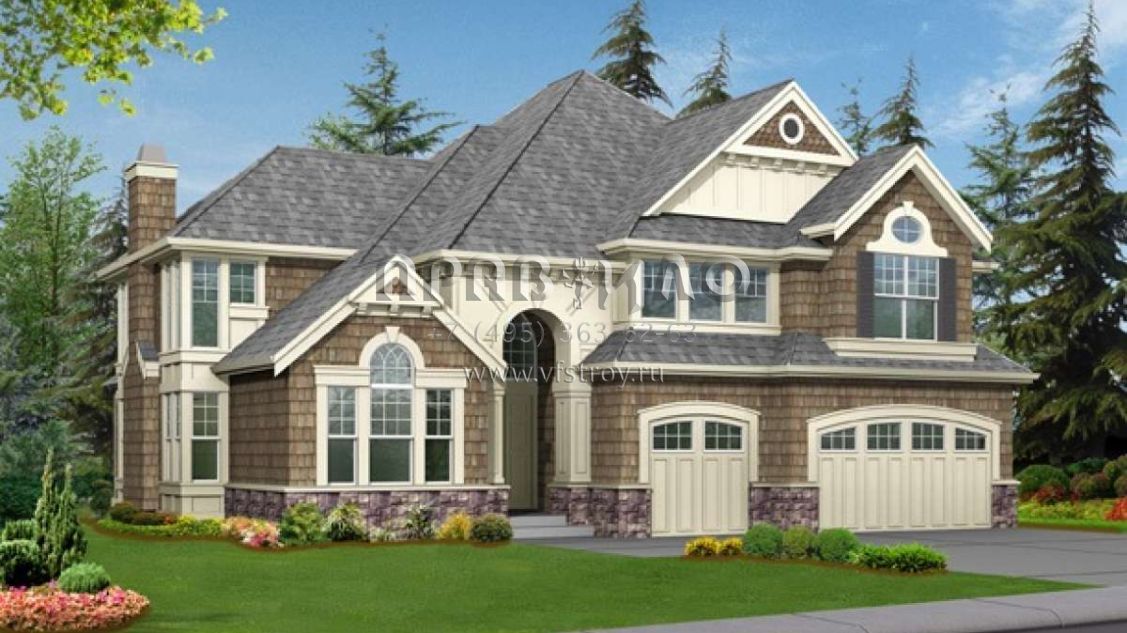 Проект двухэтажного дома с гаражом на три и более машин в современном стиле S5-332 (341-00016)
