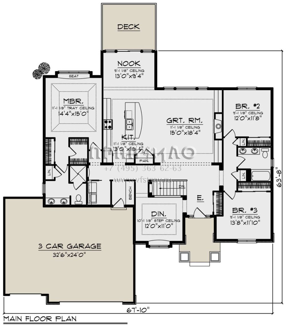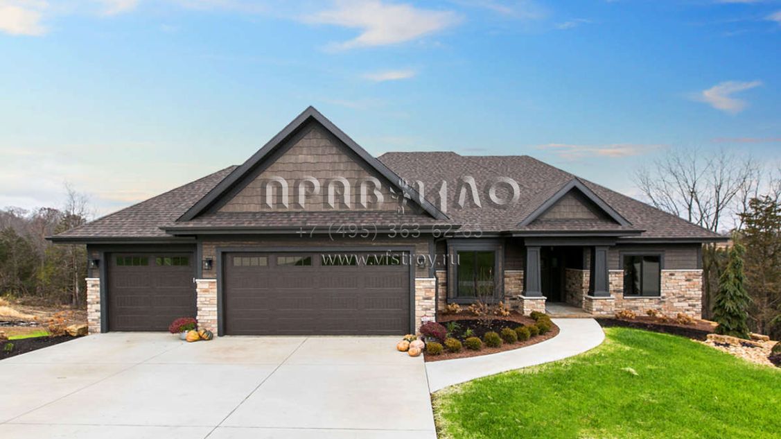 Проект одноэтажного дома с гаражом на три и более машин в американском стиле S5-333 (1020-00365)
