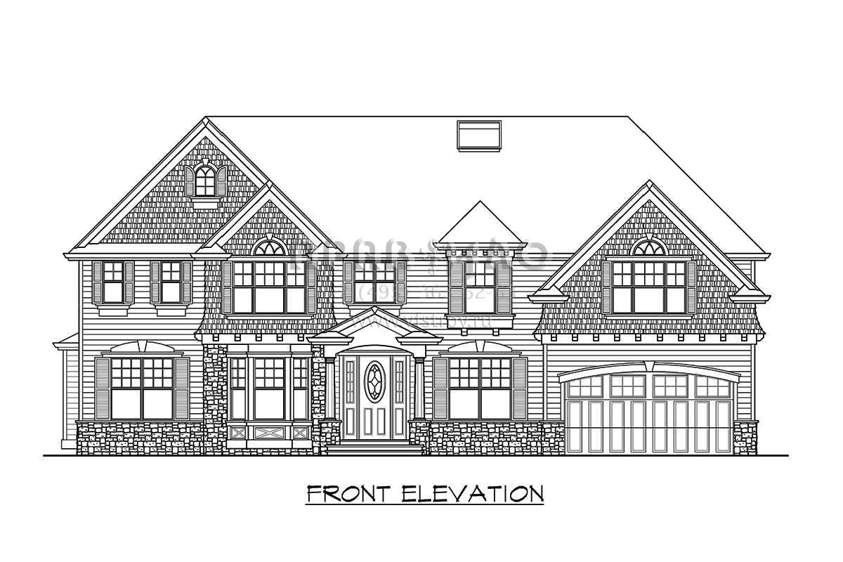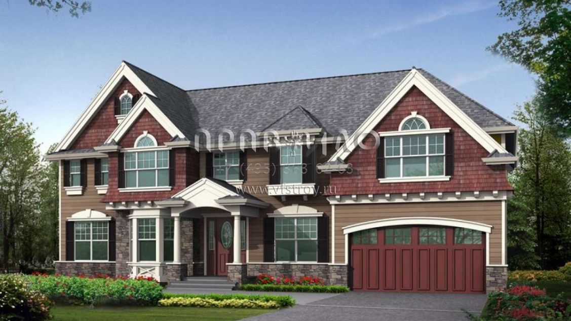 Проект двухэтажного дома с гаражом на три и более машин в американском стиле S5-333 (341-00152)
