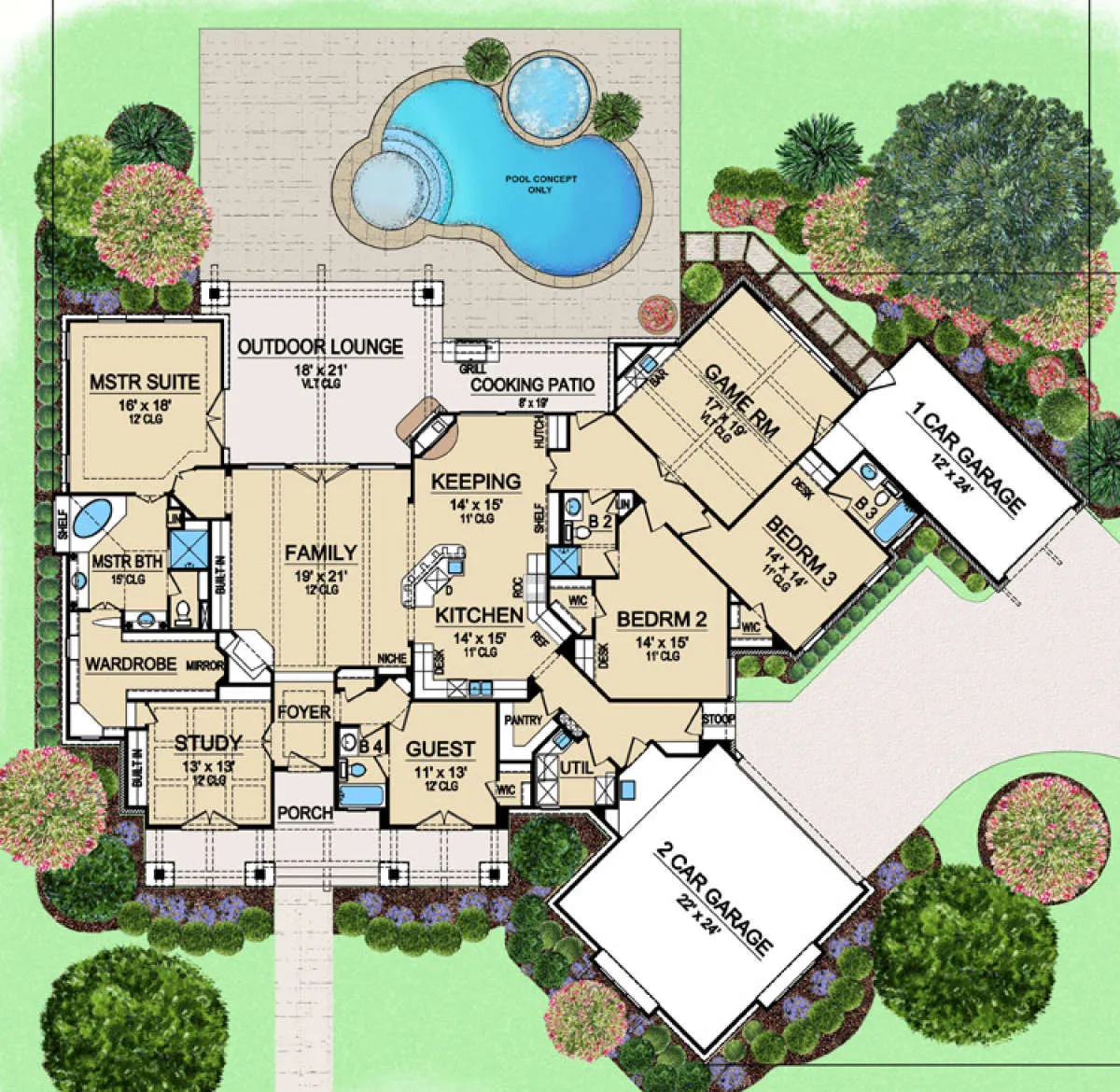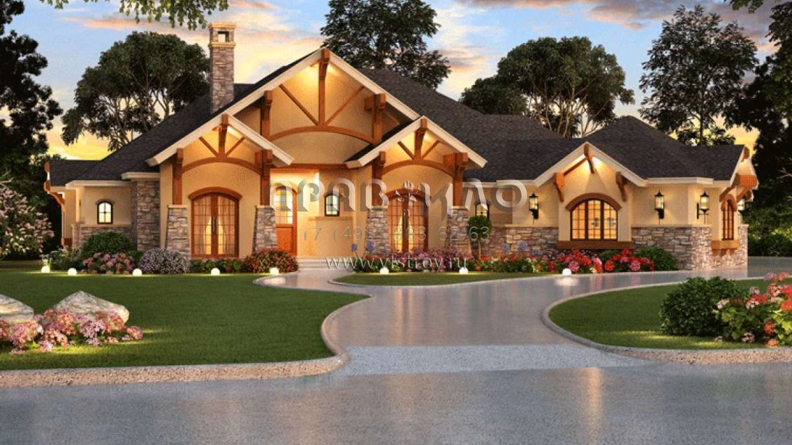 Проект одноэтажного дома с гаражом на три и более машин в американском стиле S5-333 (5445-00067)
