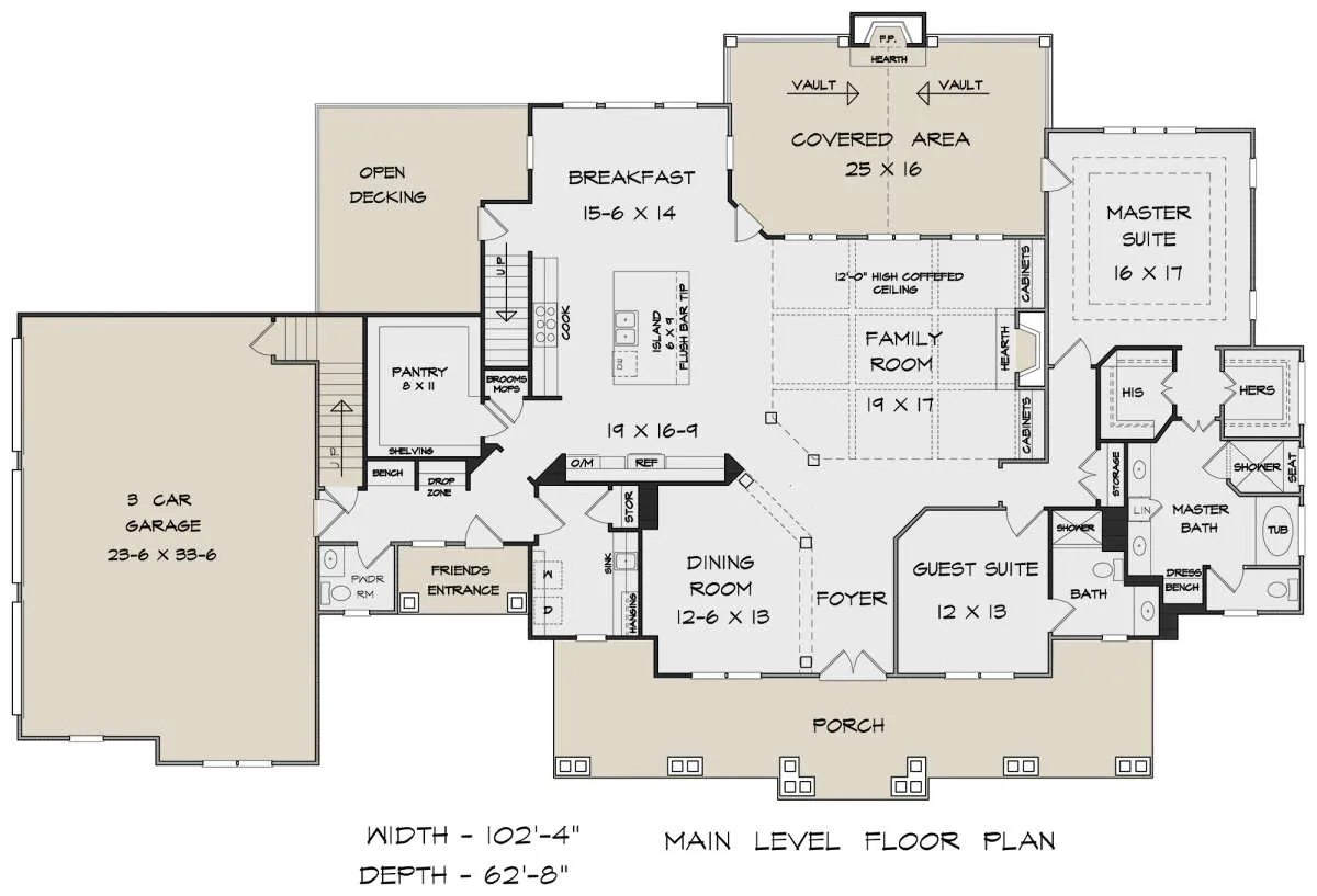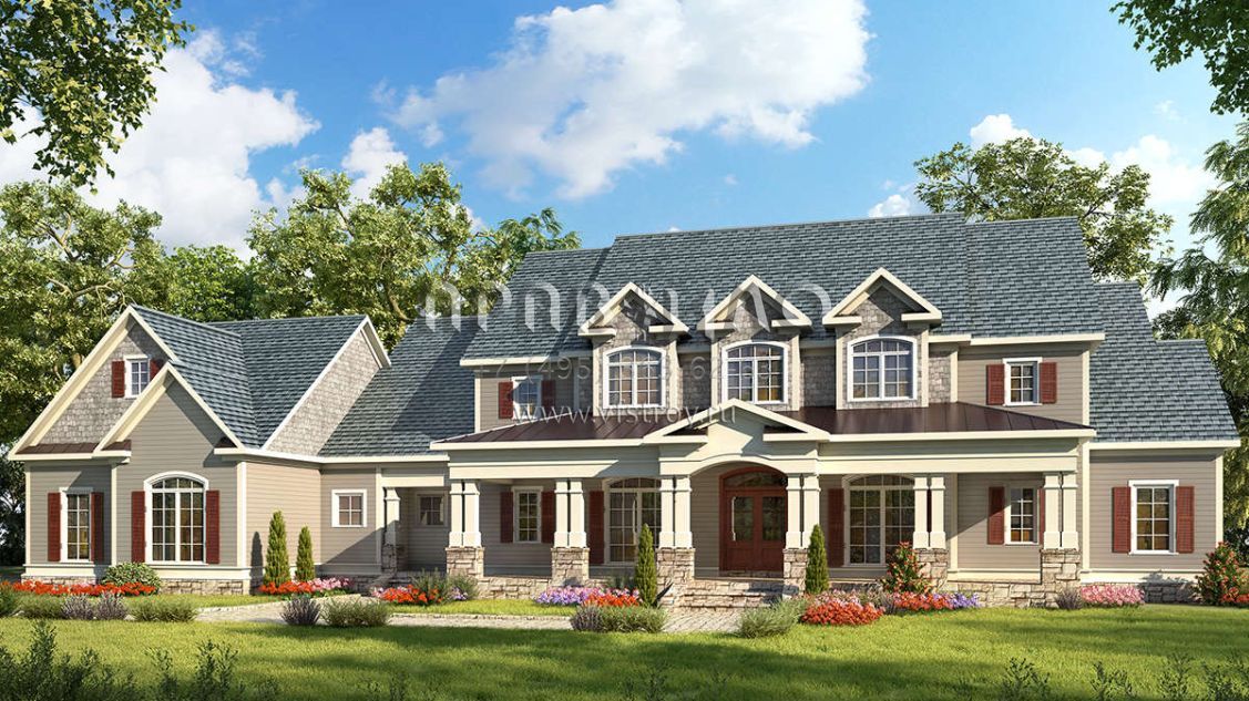 Проект двухэтажного дома с гаражом на три и более машин в стиле Ранчо S5-333 (6082-00149)