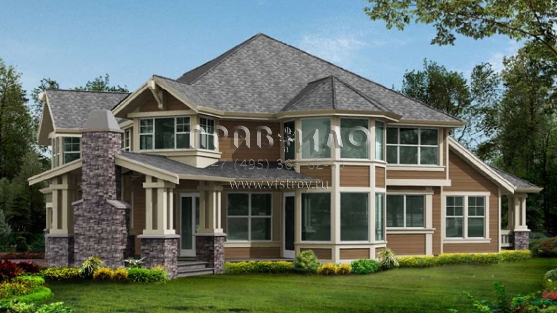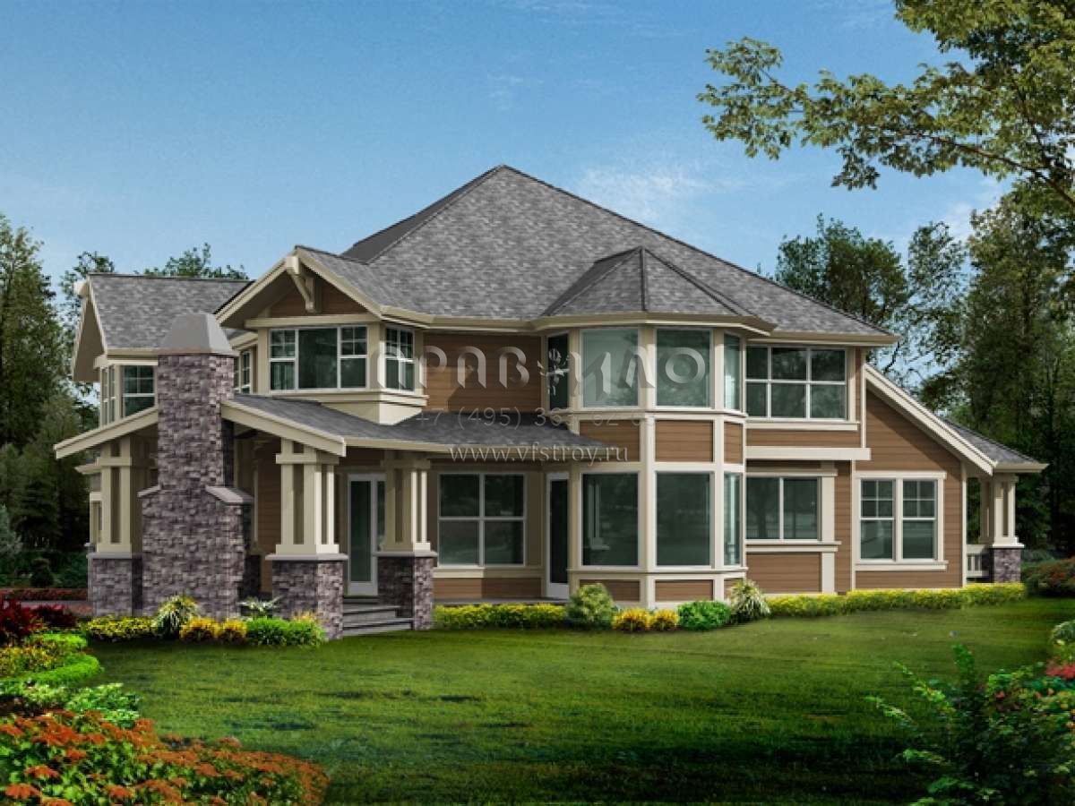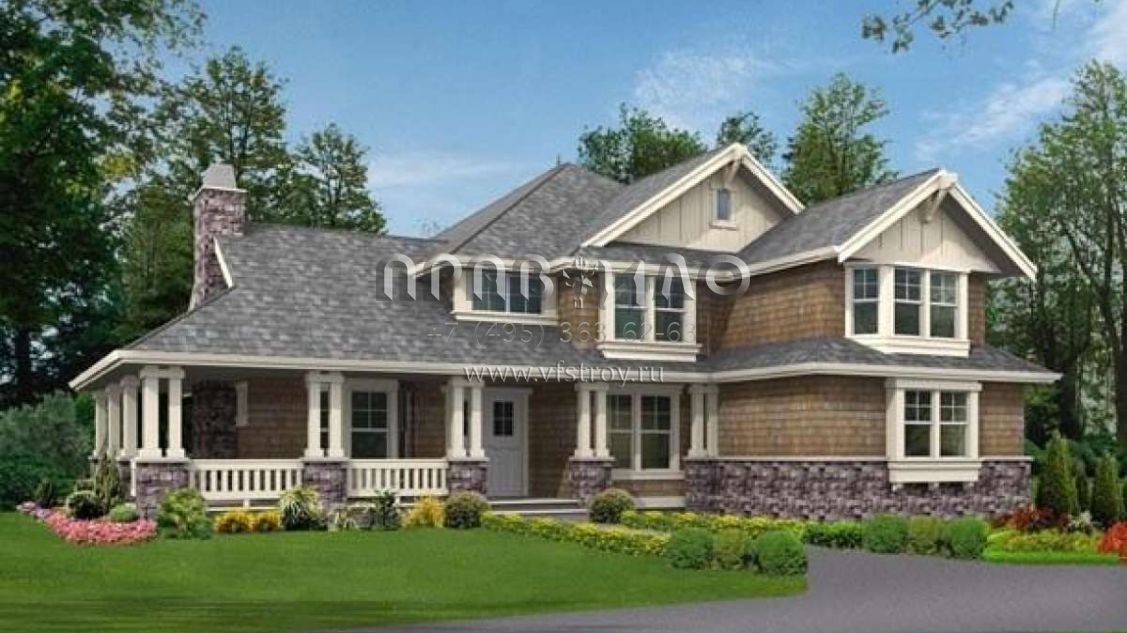Проект двухэтажного дома с гаражом на три и более машин в стиле Шале S5-334 (341-00017)