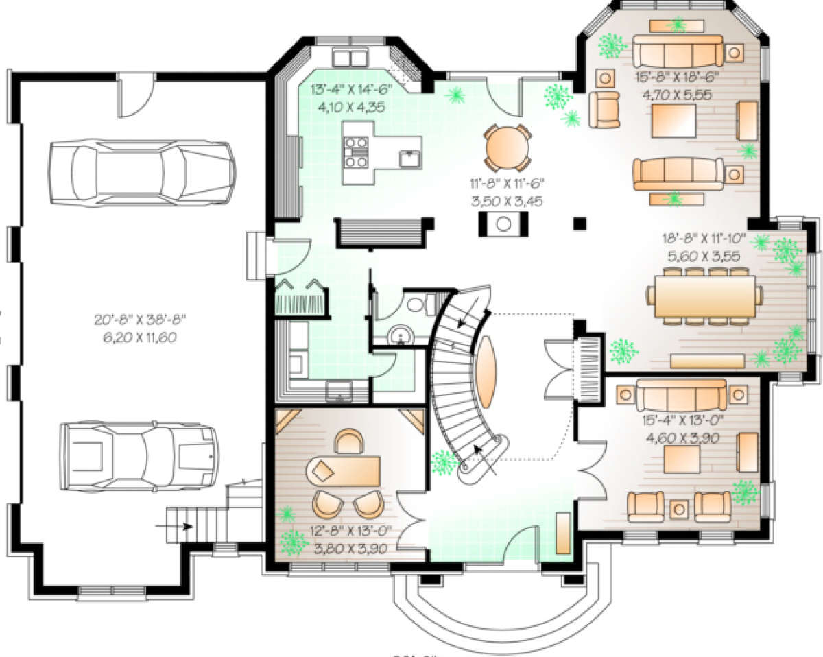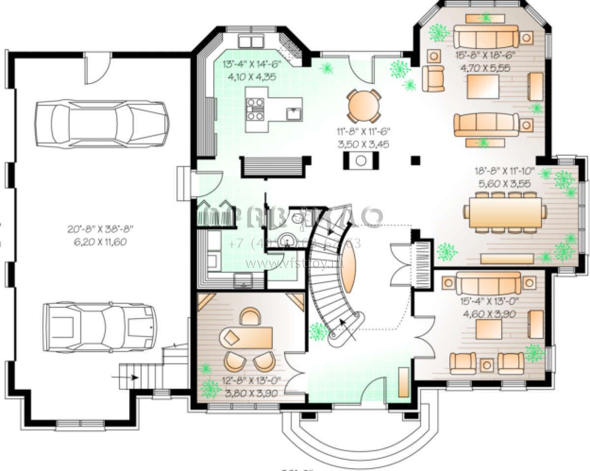 Проект двухэтажного дома с гаражом на три и более машин в английском стиле S5-336 (034-00091)