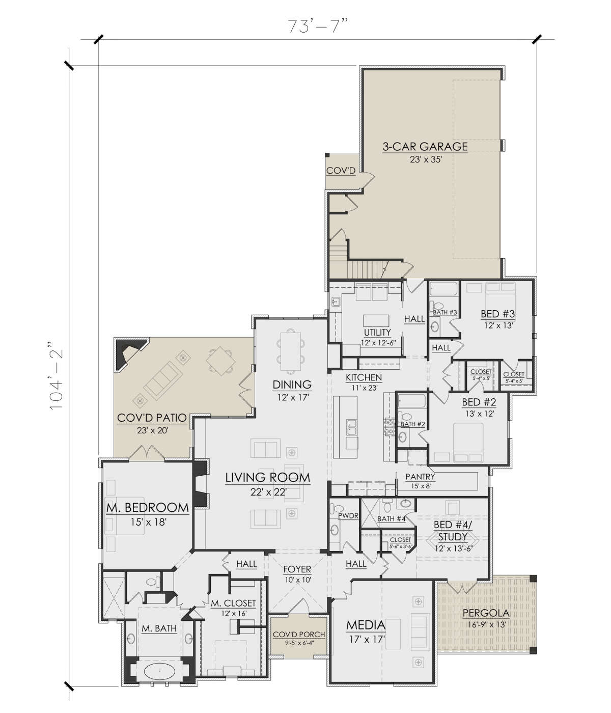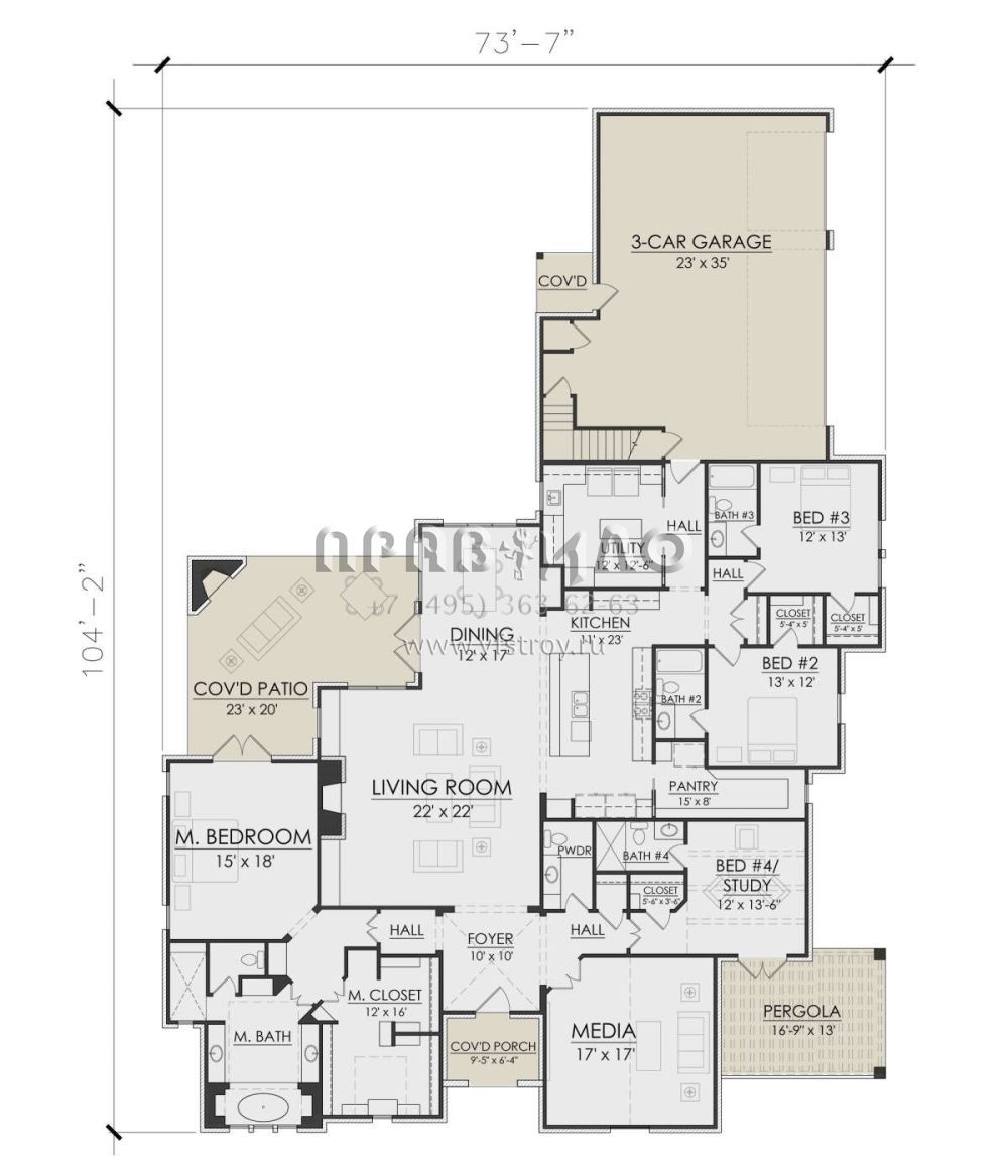 Проект одноэтажного дома с гаражом на три и более машин в английском стиле S5-336 (7071-00008)
