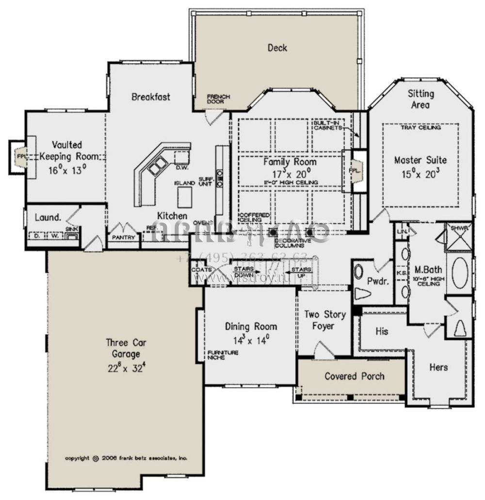 Проект двухэтажного дома с гаражом на три и более машин в стиле Ранчо S5-336 (8594-00260)