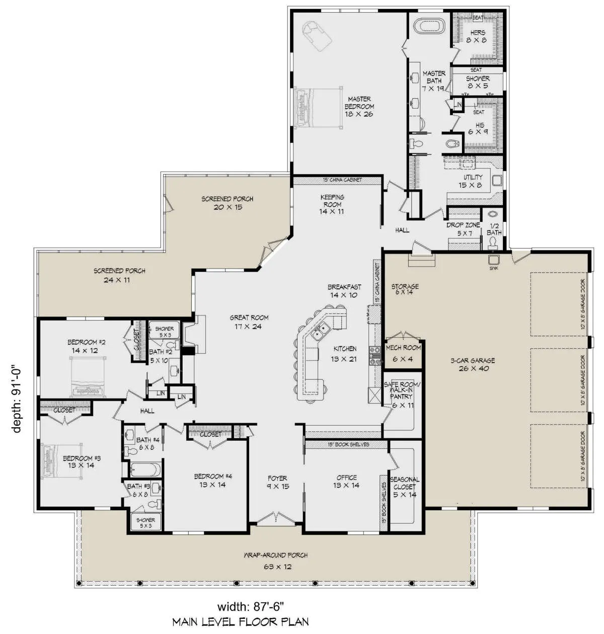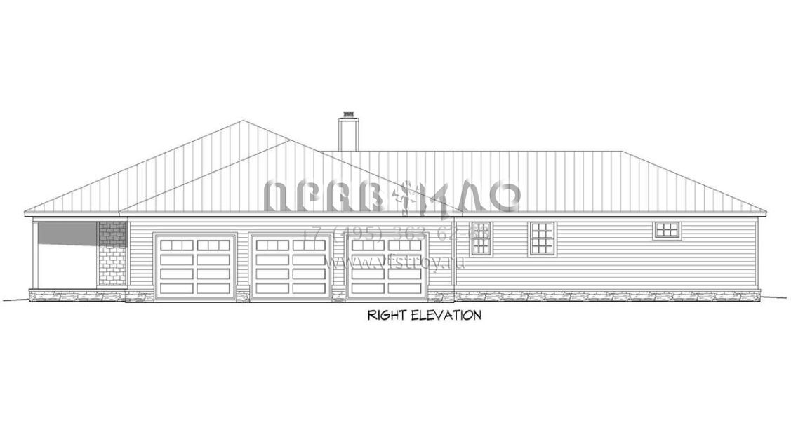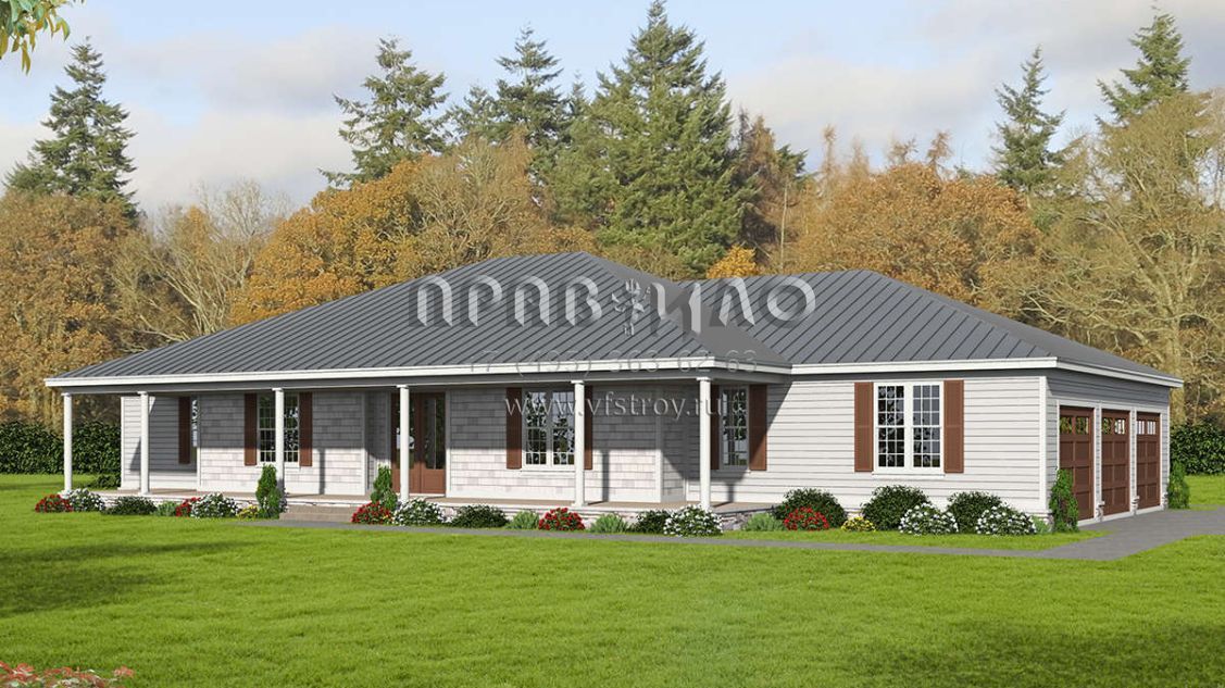 Проект одноэтажного дома с гаражом на три и более машин в стиле Ранчо S5-336 (940-00167)