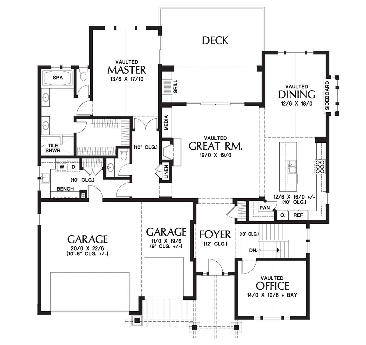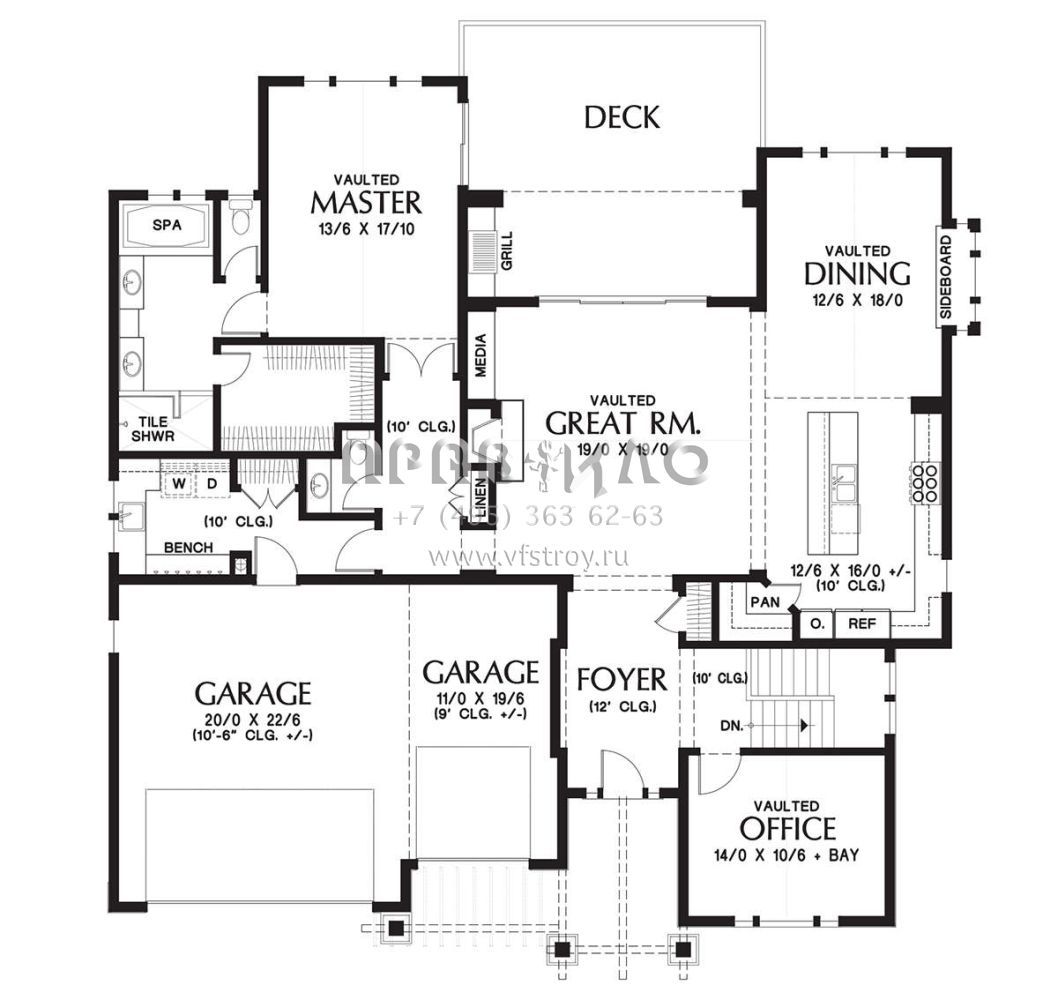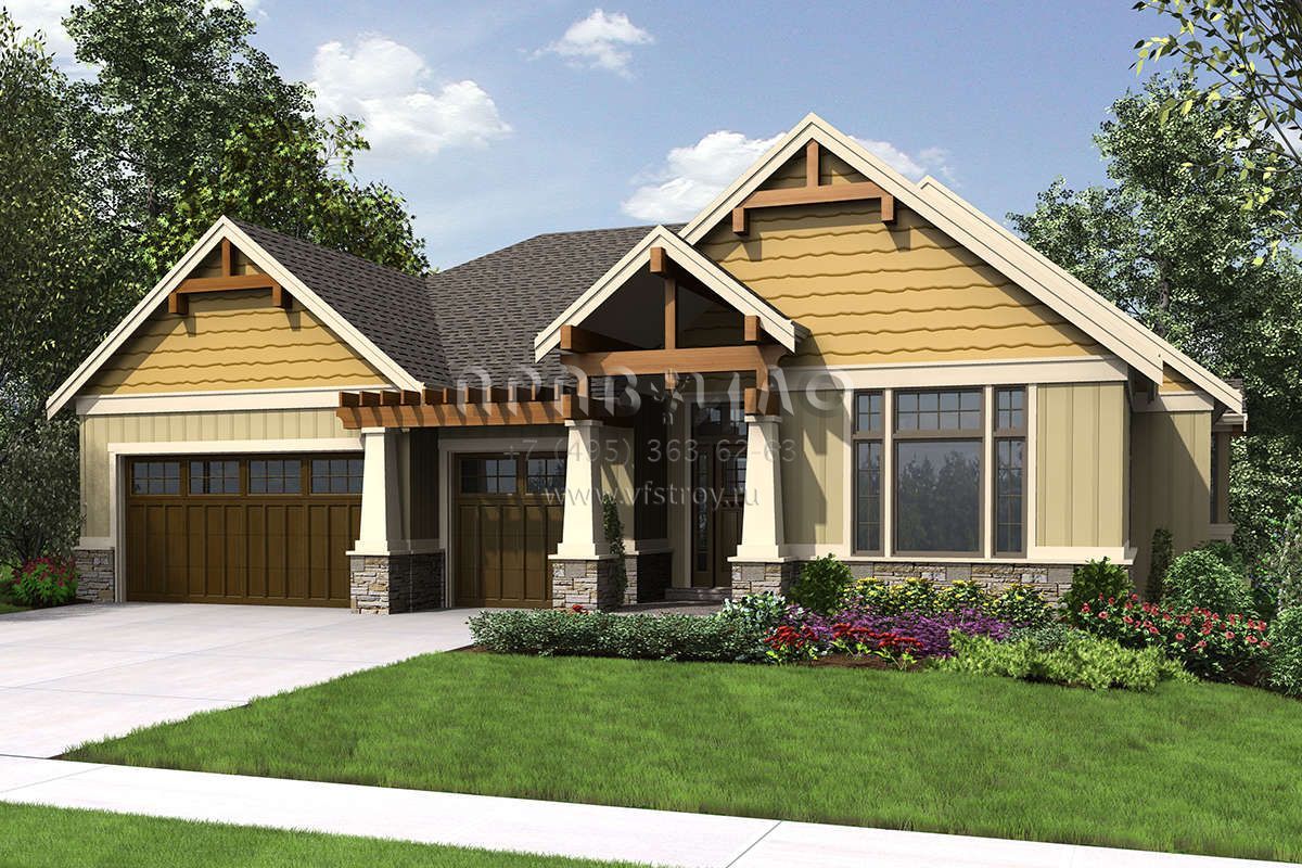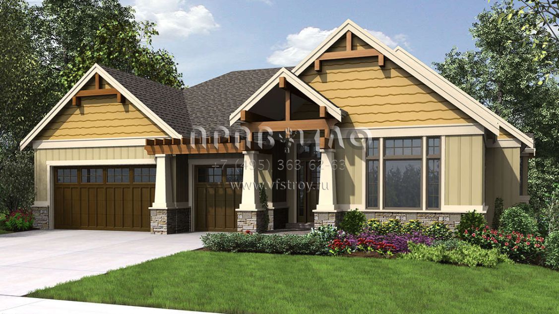Проект одноэтажного дома с гаражом на три и более машин в американском стиле S5-337 (2559-00713)