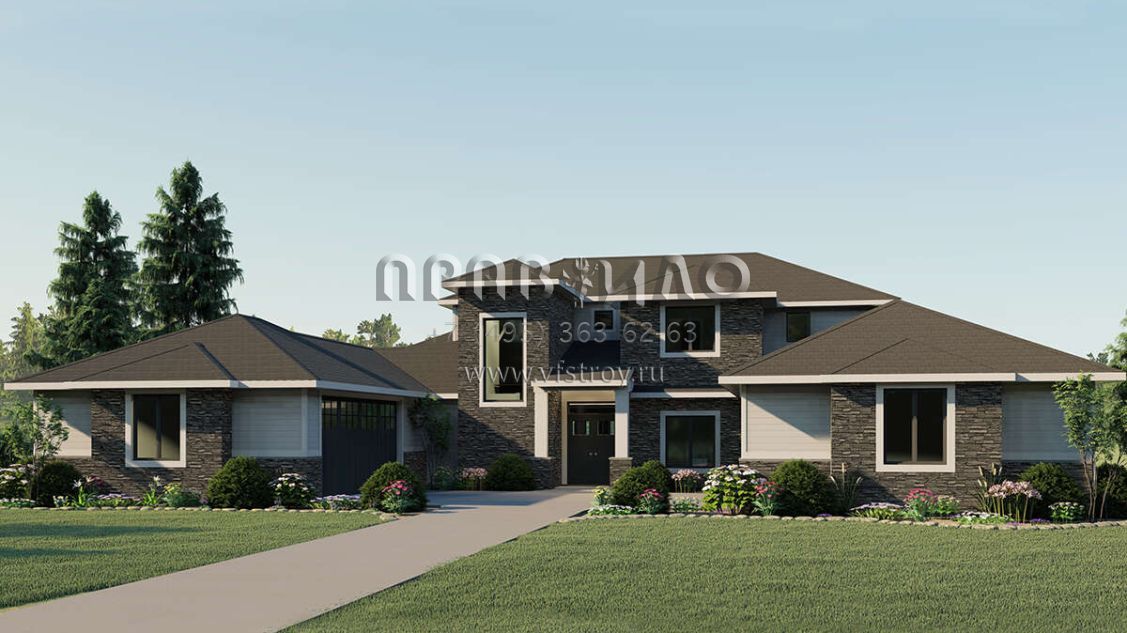 Проект двухэтажного дома с гаражом на три и более машин в современном стиле S5-337 (5032-00009)
