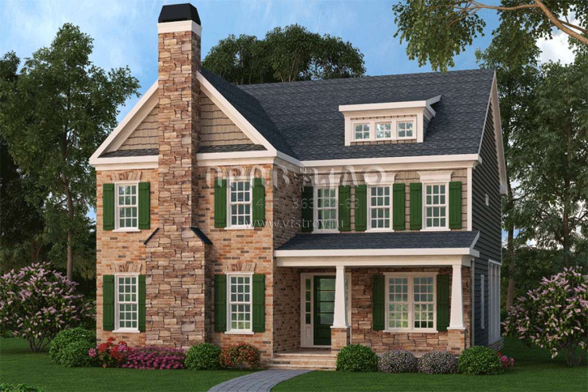 Проект двухэтажного дома с гаражом на две машины в американском стиле S5-338 (009-00199)