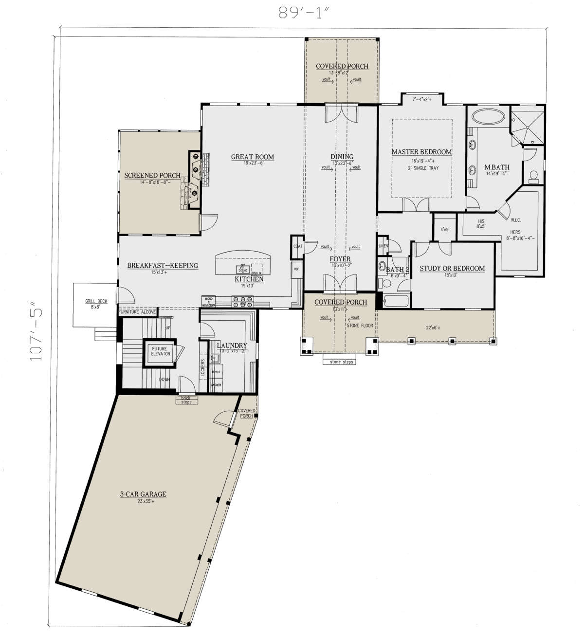 S5-338 (286-00089) Это иностранный проект, для которого требуется адаптация под нормы, действующие в Российской Федерации. Вы видите проект дома в стиле Ранчо. В этом доме сочетаются черты сельской постройки и аскетичность лофта. Внутри жильцы смогут проводить время с максимальным комфортом. Обратим внимание, что сейчас на планировках все размеры представлены в футах. Для перевода в метры вам необходимо значение в футах умножить на 0,3048.