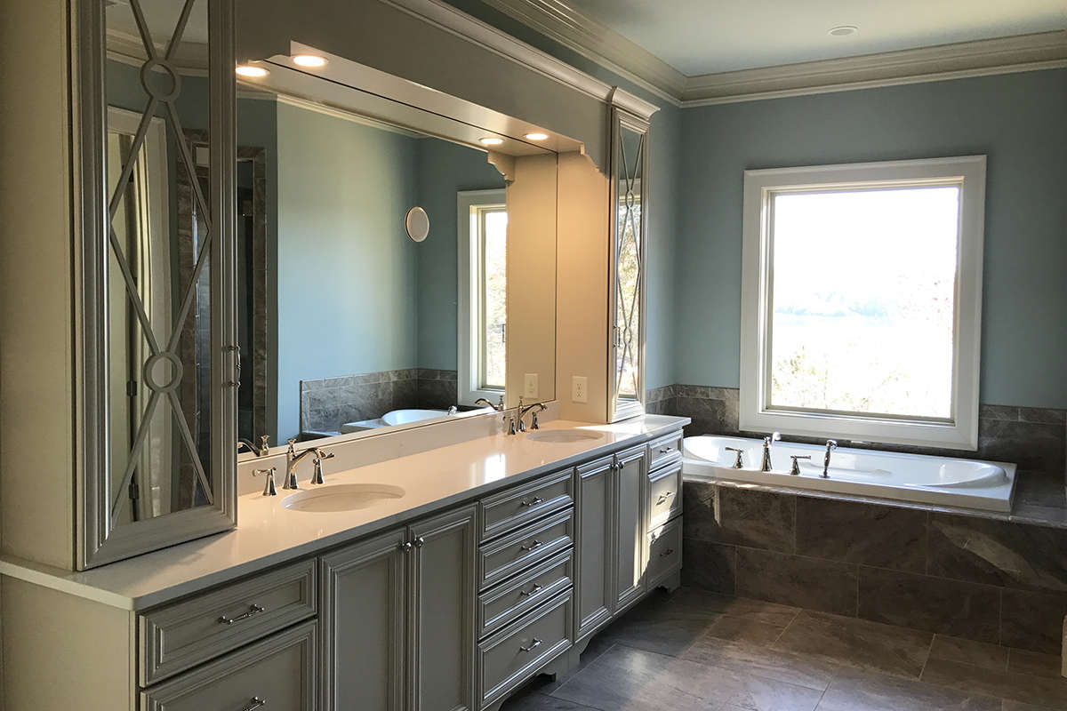 Это проект двухэтажного дома с гаражом на три и более машин жилой площадью 338 кв.м. Длина дома 32.3 м, ширина 27.1 м, высота 8.8 м. В доме три спальни и три санузла.