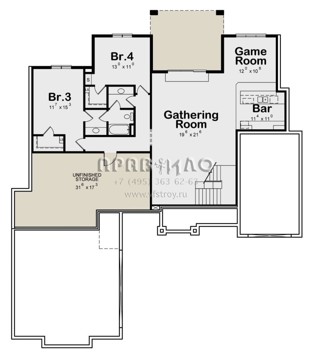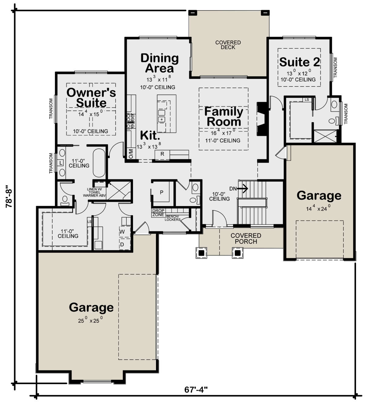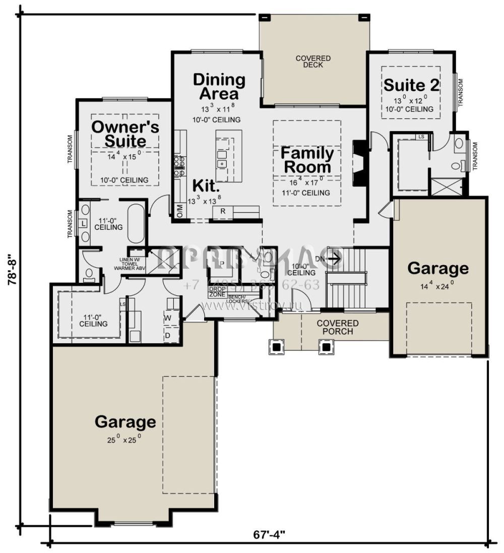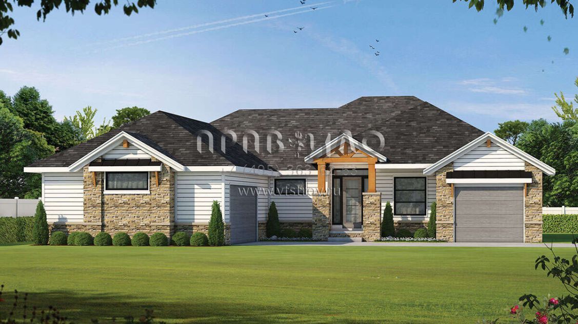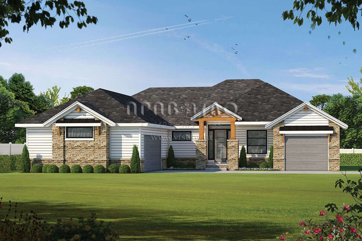 Проект одноэтажного дома с гаражом на три и более машин в американском стиле S5-338 (402-01664)
