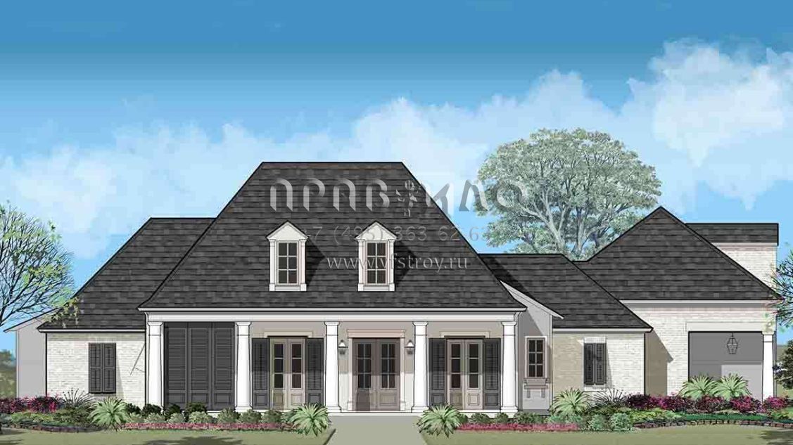 Проект одноэтажного дома с гаражом на три и более машин в стиле Ранчо S5-338 (7516-00037)