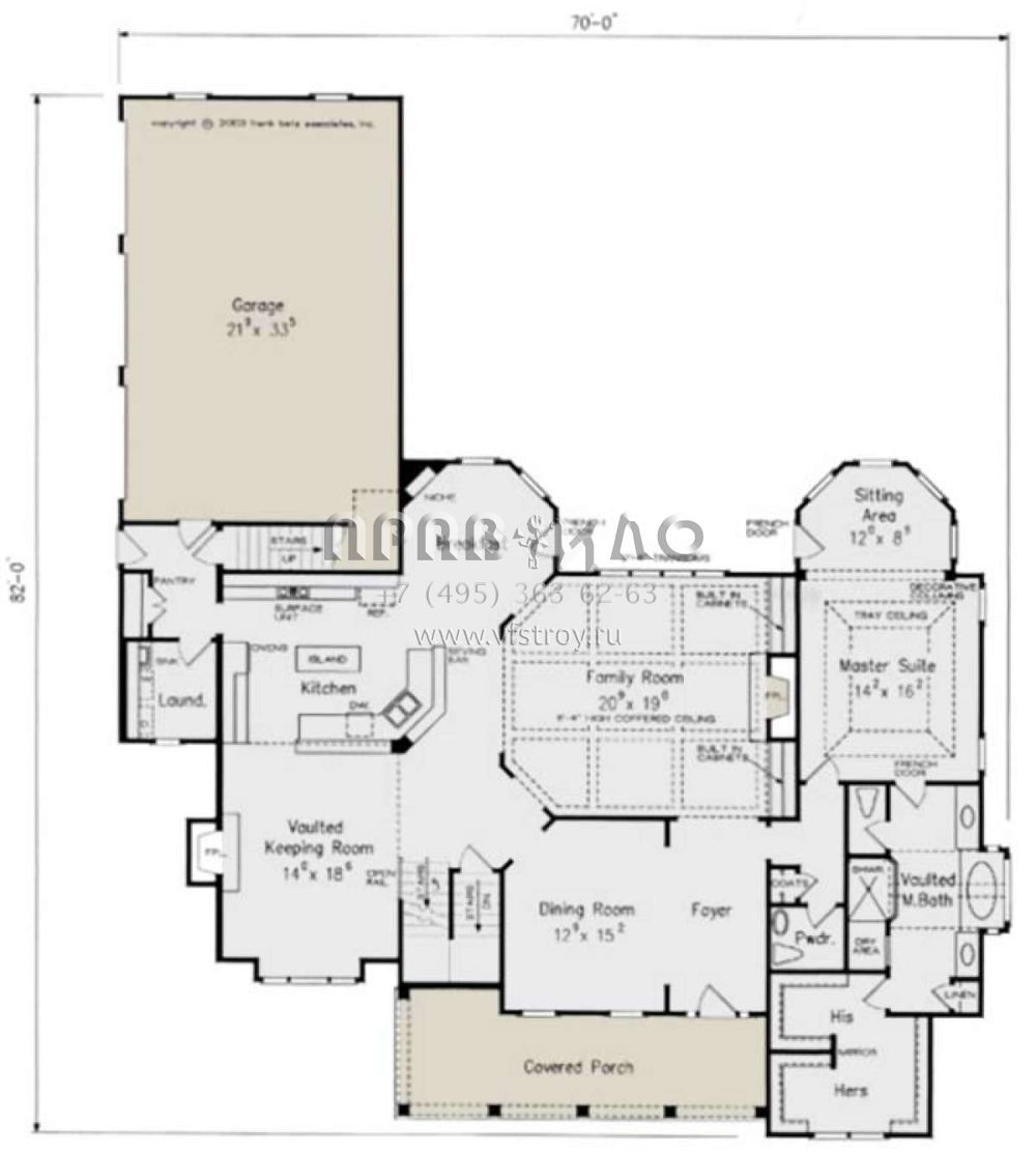 Проект двухэтажного дома с гаражом на три и более машин в стиле Ранчо S5-338 (8594-00339)