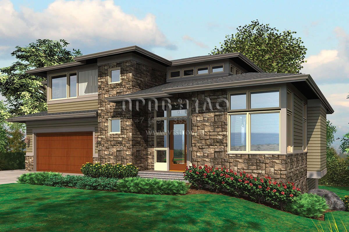 Проект двухэтажного дома с гаражом на две машины в современном стиле S5-339 (2559-00551)