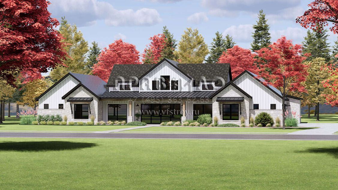 Проект одноэтажного дома с гаражом на три и более машин в современном стиле S5-339 (7983-00016)