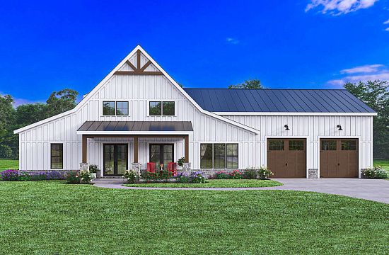Проект двухэтажного дома с открытой террасой, балконом и гаражом на три машины S5-339 (8436-00031)