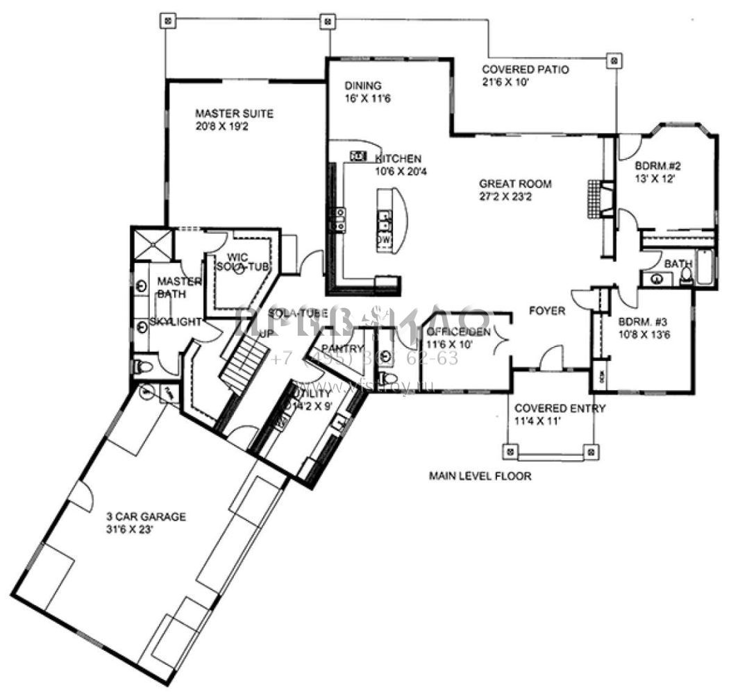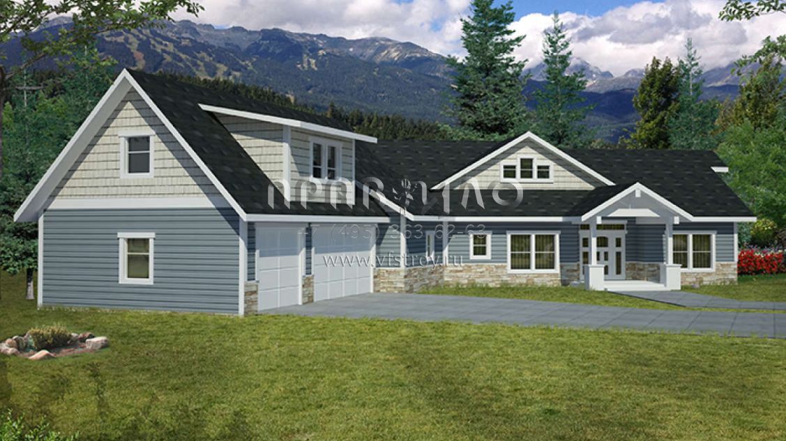 Проект одноэтажного дома с гаражом на три и более машин в скандинавском стиле S5-340 (039-00668)