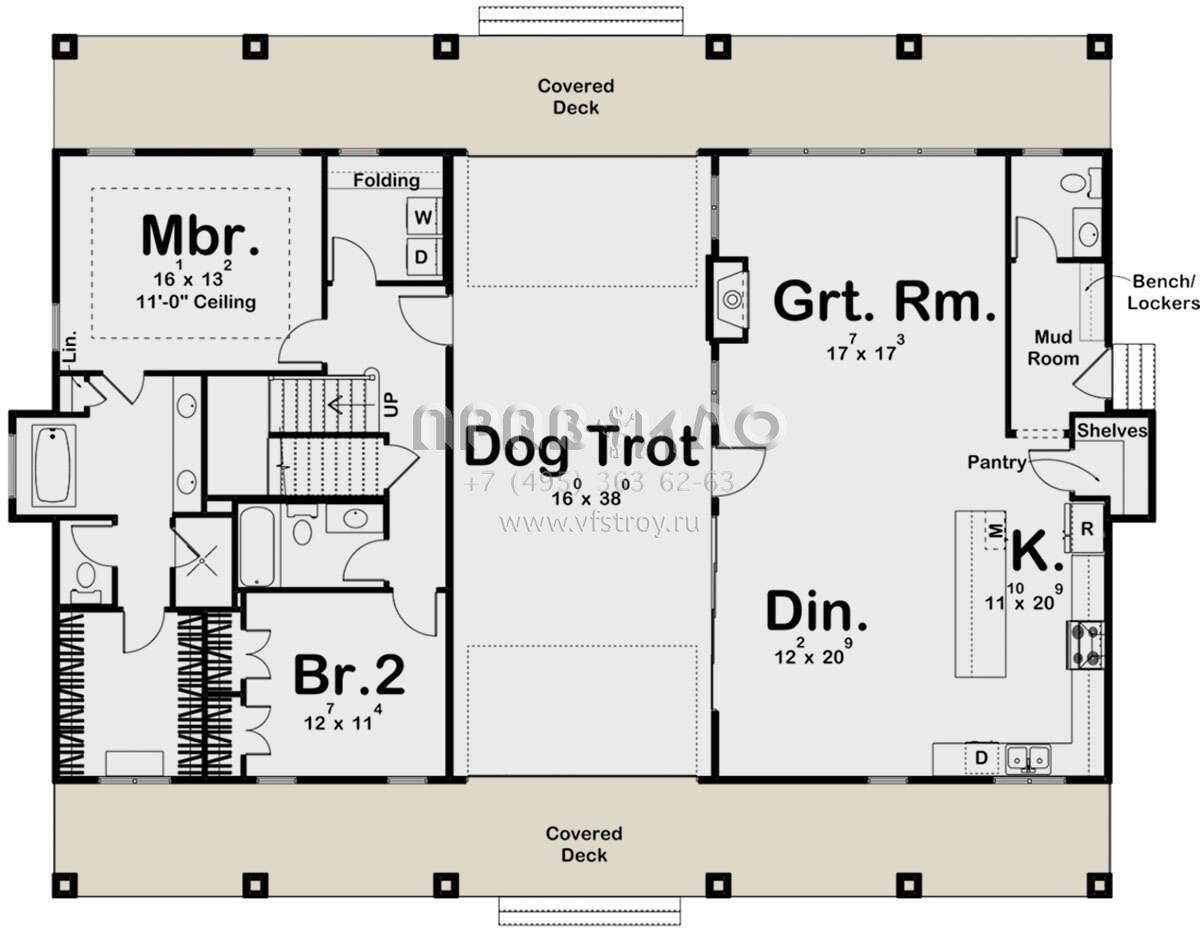 S5-340 (963-00675) Это иностранный проект, для которого требуется адаптация под нормы, действующие в Российской Федерации. Вы видите проект дома в стиле Ранчо. В этом доме сочетаются черты сельской постройки и аскетичность лофта. Внутри жильцы смогут проводить время с максимальным комфортом. Обратим внимание, что сейчас на планировках все размеры представлены в футах. Для перевода в метры вам необходимо значение в футах умножить на 0,3048.