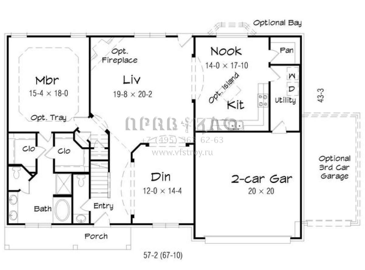 Проект двухэтажного дома с гаражом на две машины в стиле Ранчо S5-341 (3367-00030)