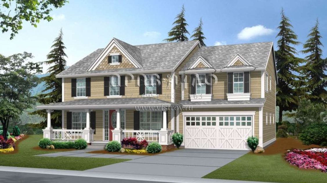 Проект двухэтажного дома с гаражом на три и более машин в стиле Ранчо S5-341 (341-00219)