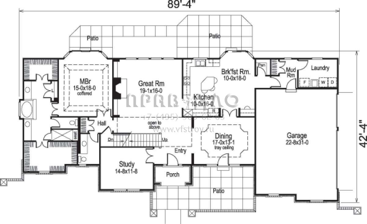 Проект двухэтажного дома с гаражом на три и более машин в стиле Ранчо S5-341 (5633-00160)